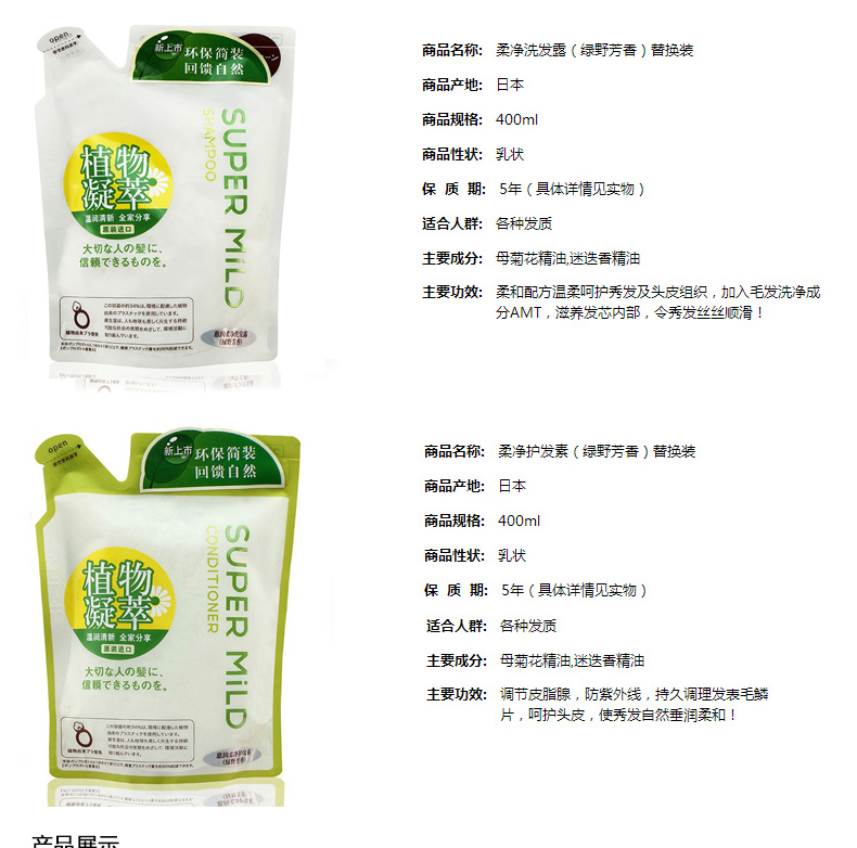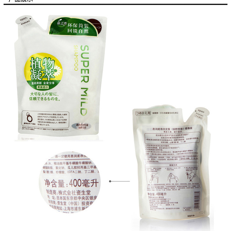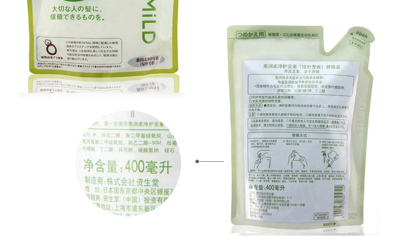 商品名称:资生堂 惠润绿野芳香洗护套装替换装400ml*2袋洗发水护发素2件套