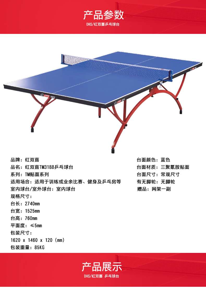 商品名称:DHS/红双喜 T3188 乒乓球台乒乓球桌 室内家用折叠标准移动比赛