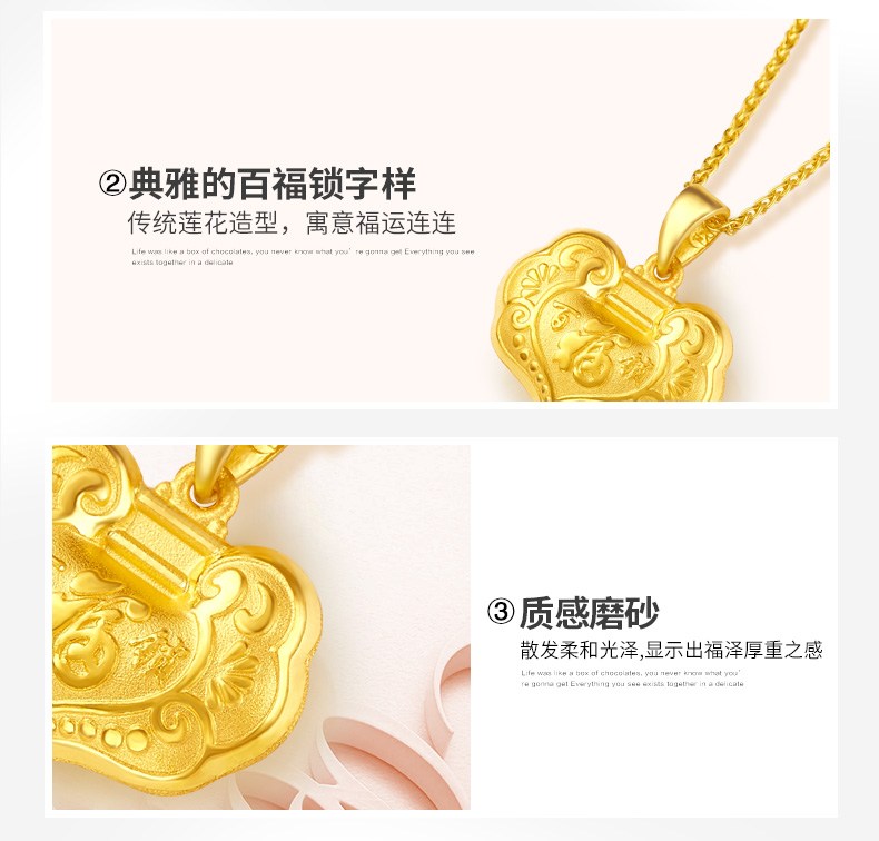 商品名称:周大生 黄金吊坠女 百福平安长命锁 金锁宝宝锁足金挂坠2.4g