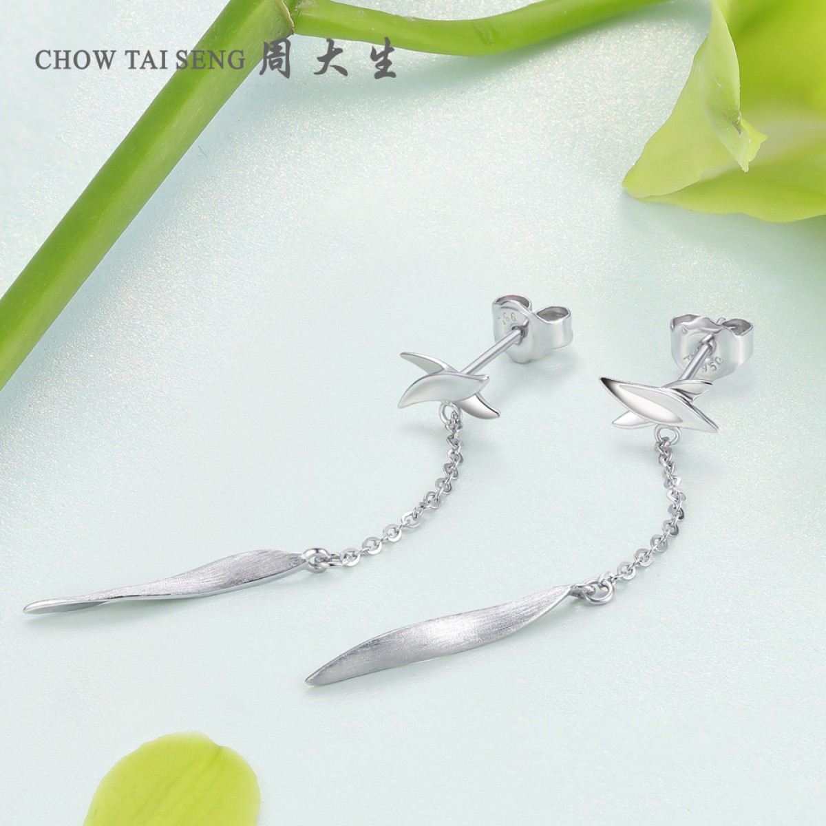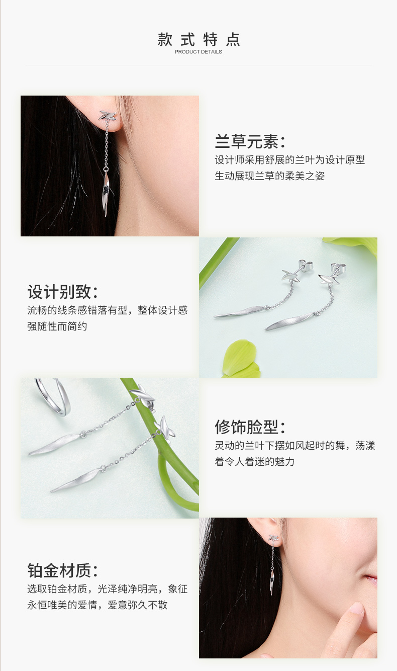 商品名称:周大生 铂金耳钉女款pt950白金耳饰花漾系列兰花新品送礼铂金耳钉