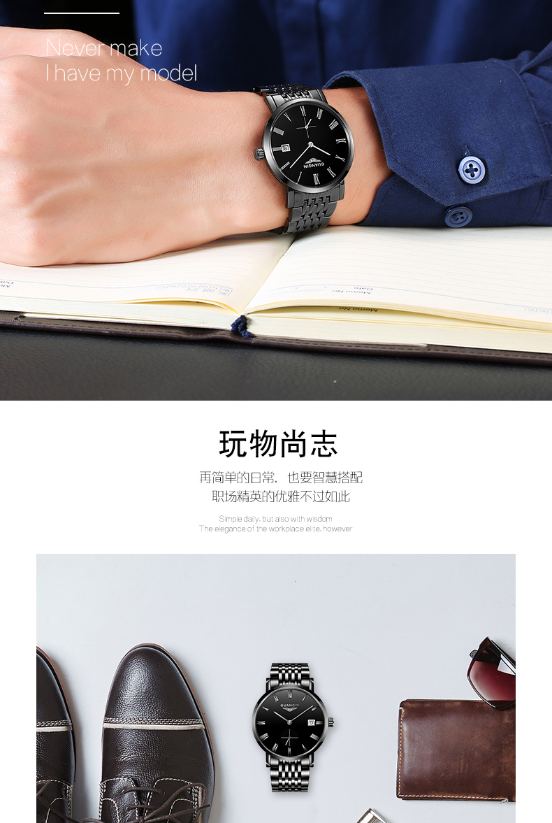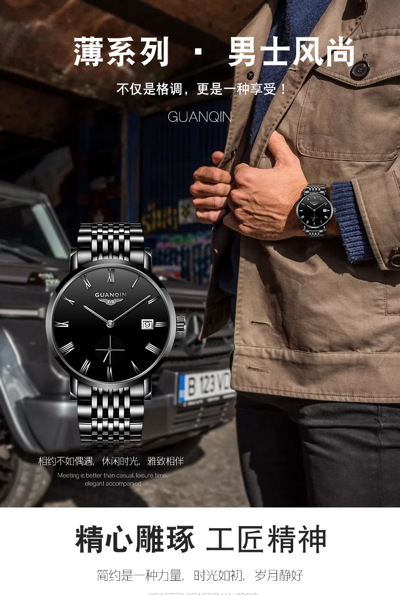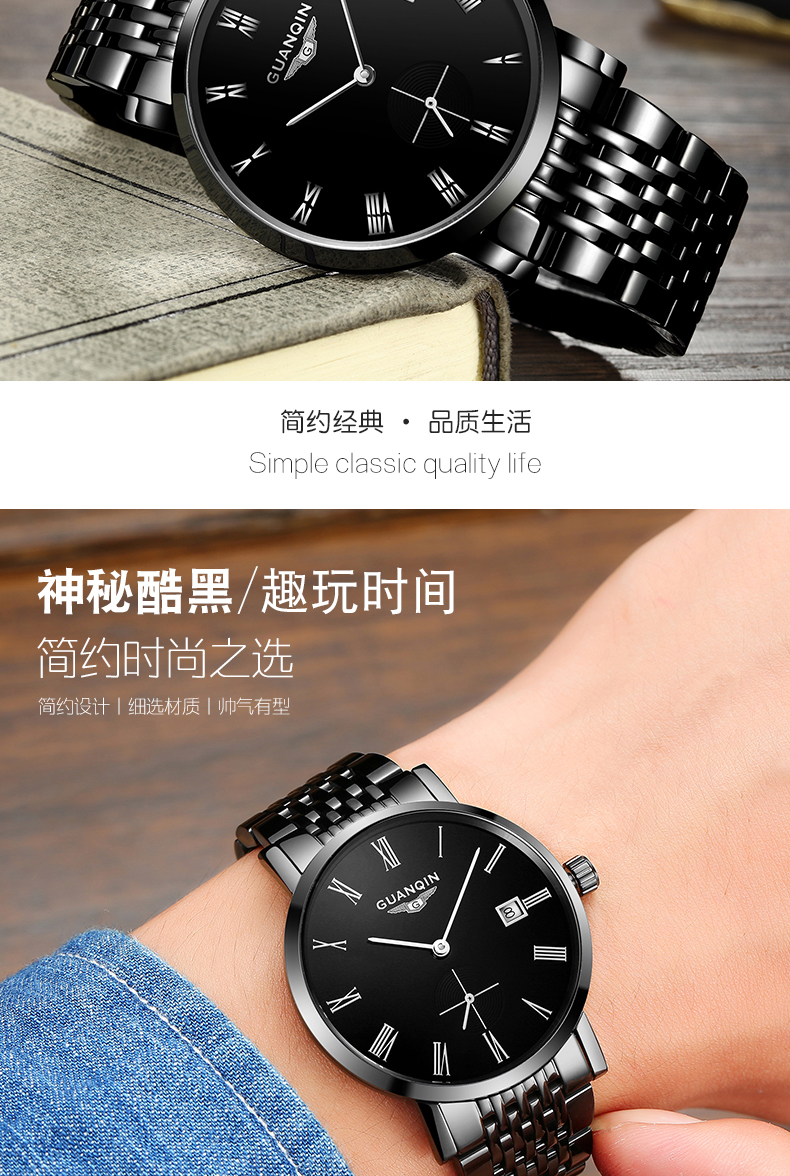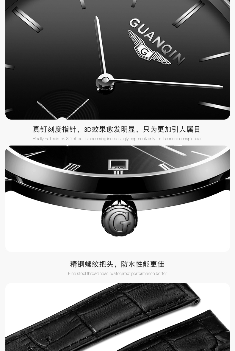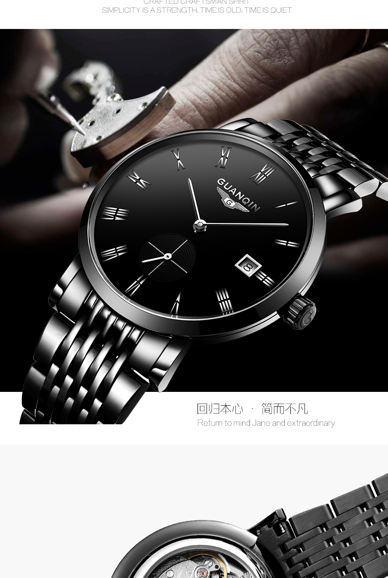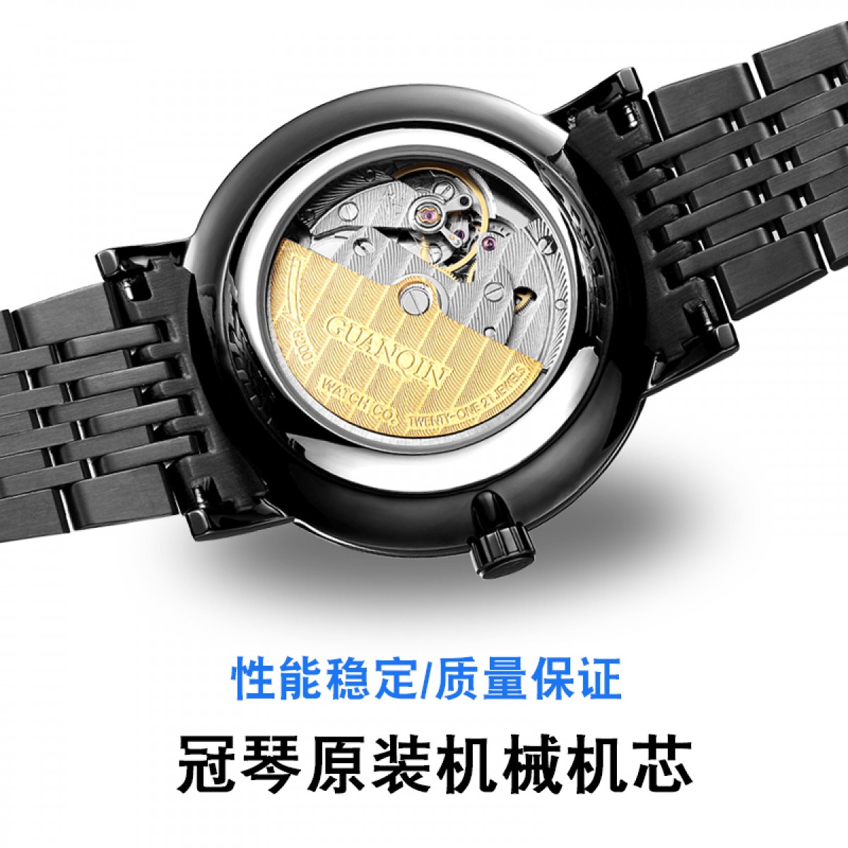 商品名称:冠琴 手表 全自动机械表时尚潮流男表防水真皮男士超薄款精钢带