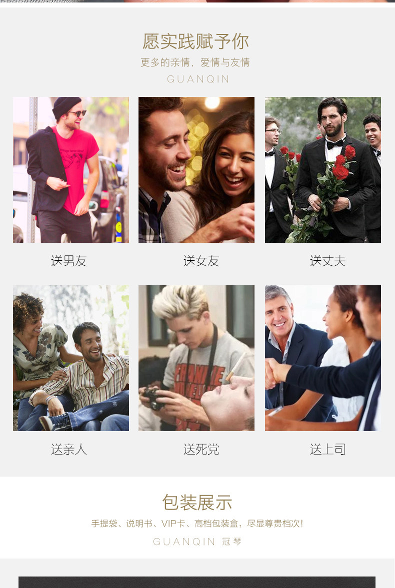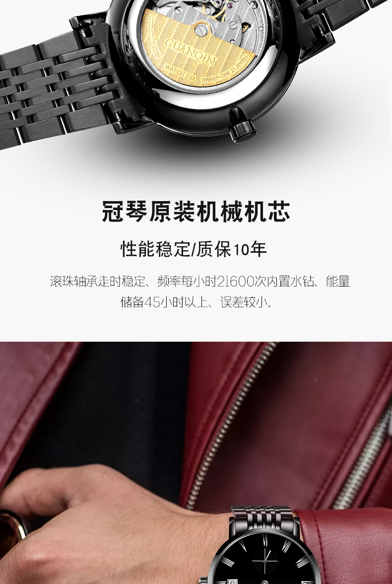 冠琴 手表 全自动机械表时尚潮流男表防水真皮男士超薄款精钢带