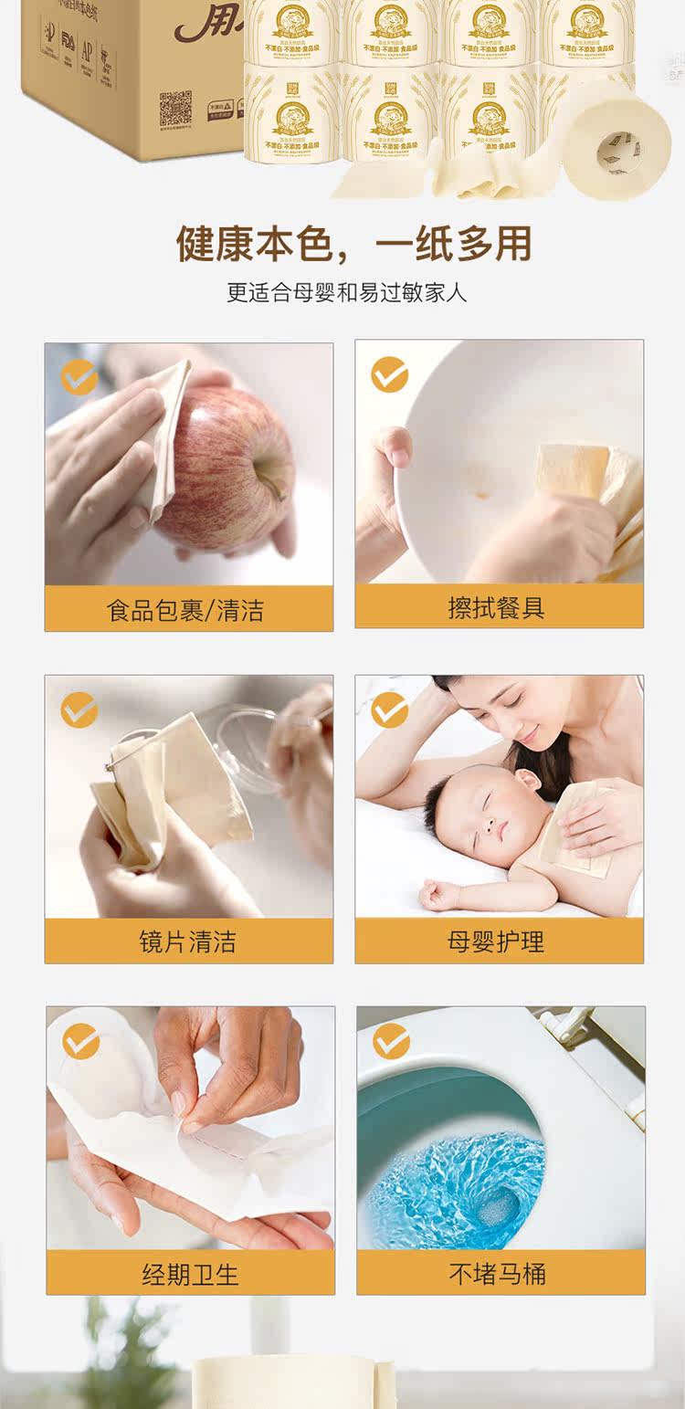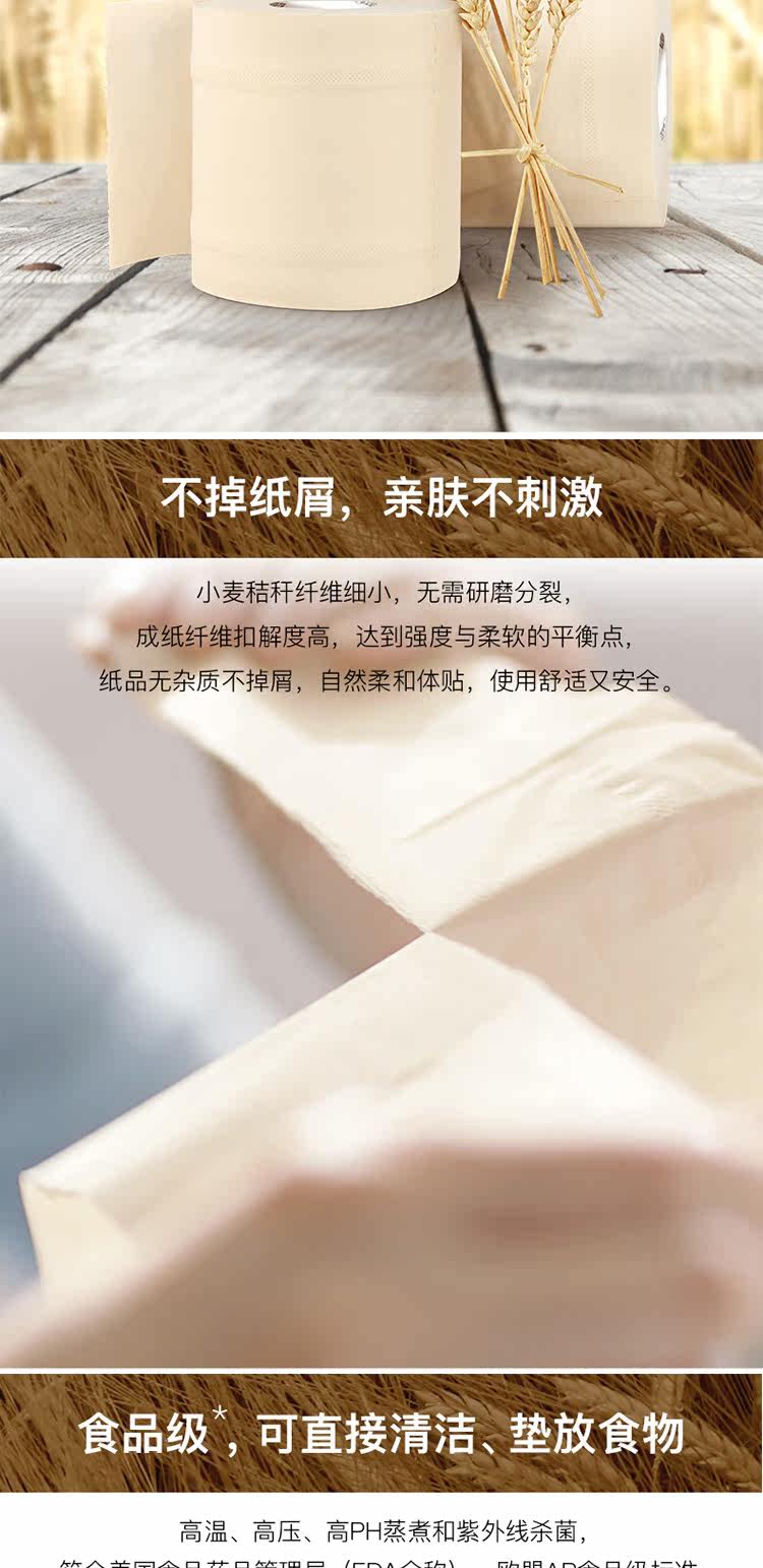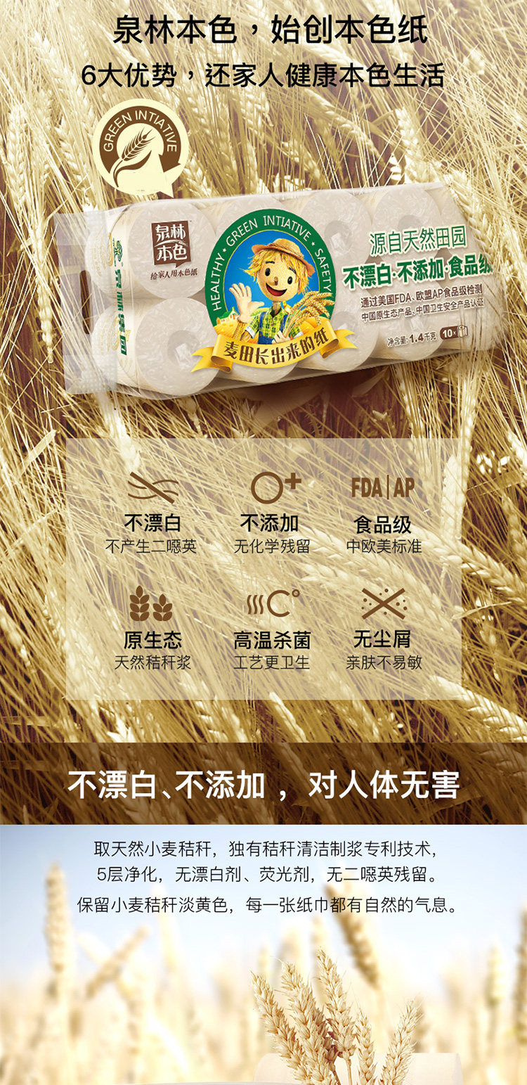 商品名称:泉林本色 无漂白三层卫生卷纸厕纸小麦秸秆140克*14卷箱装
