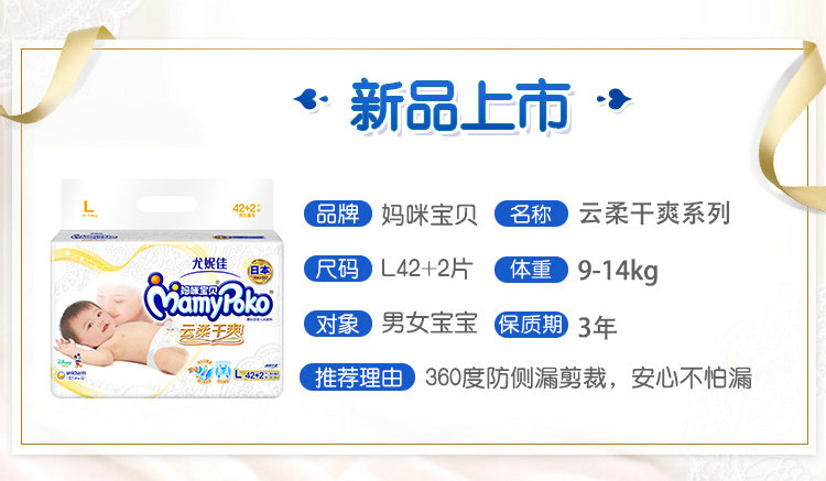 商品名称:妈咪宝贝 纸尿裤超薄透气干爽L44片男女宝宝尿不湿婴儿大号