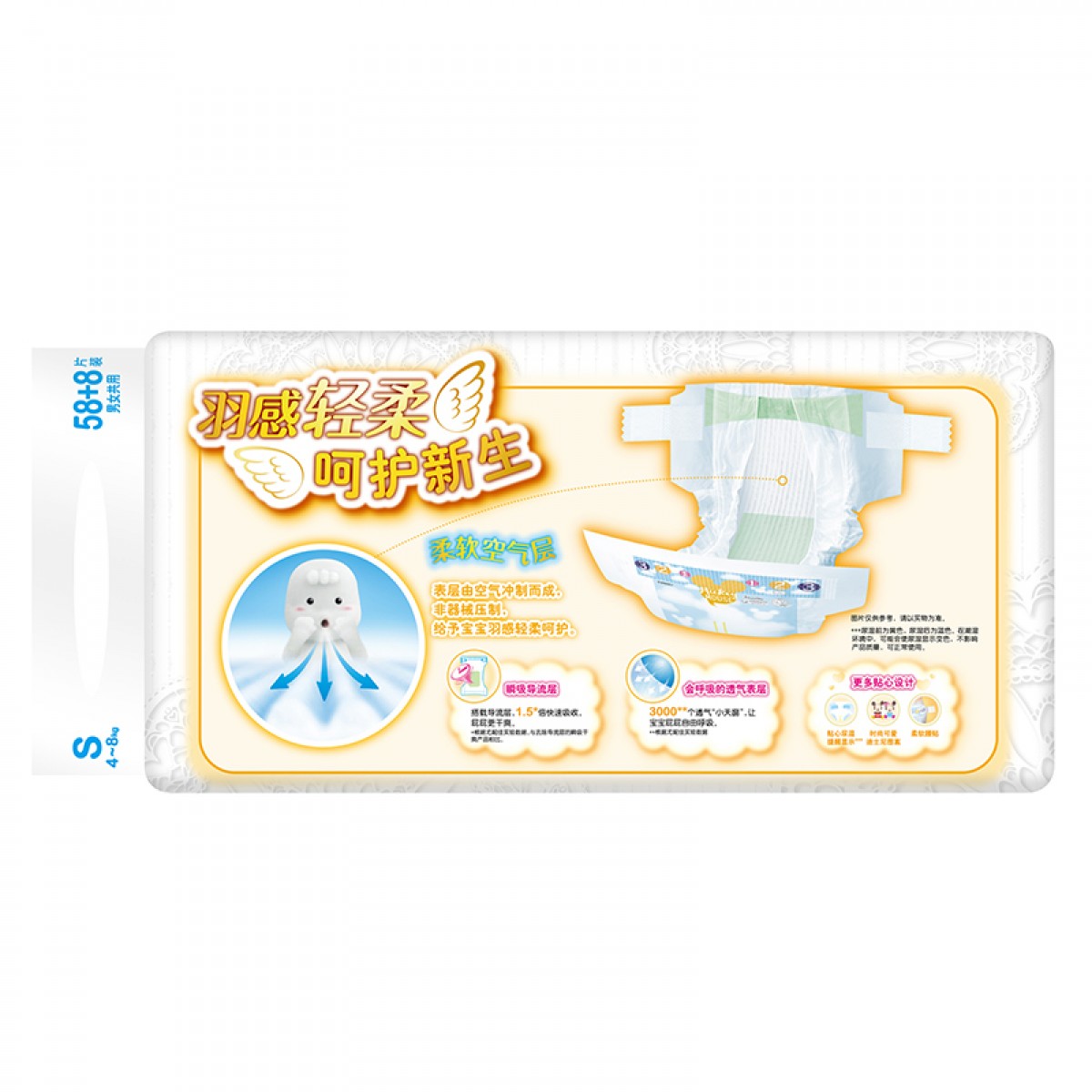 妈咪宝贝 纸尿裤云柔新生儿S58+8片 初生儿男女宝宝 婴儿尿不湿