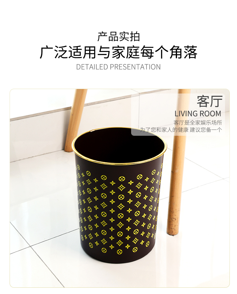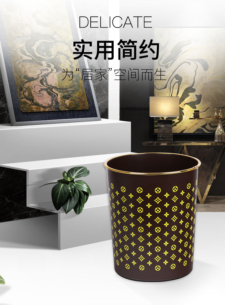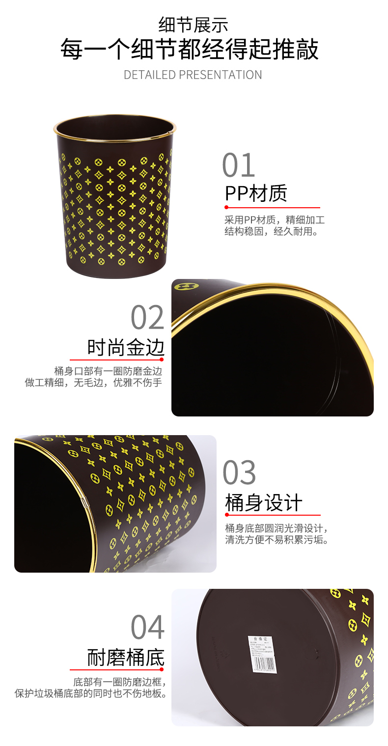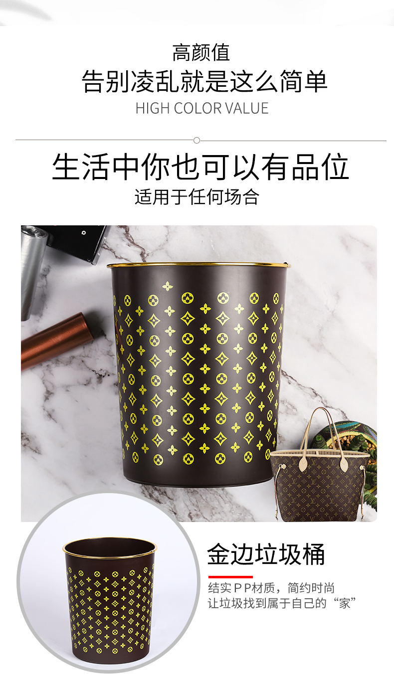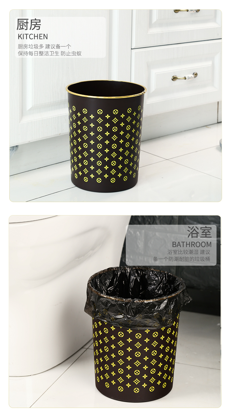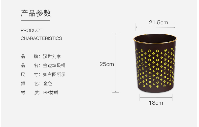 商品名称:国产 垃圾篓欧式创意时尚垃圾桶金边无盖酒店家用厨房卫生间HSLJ-1247