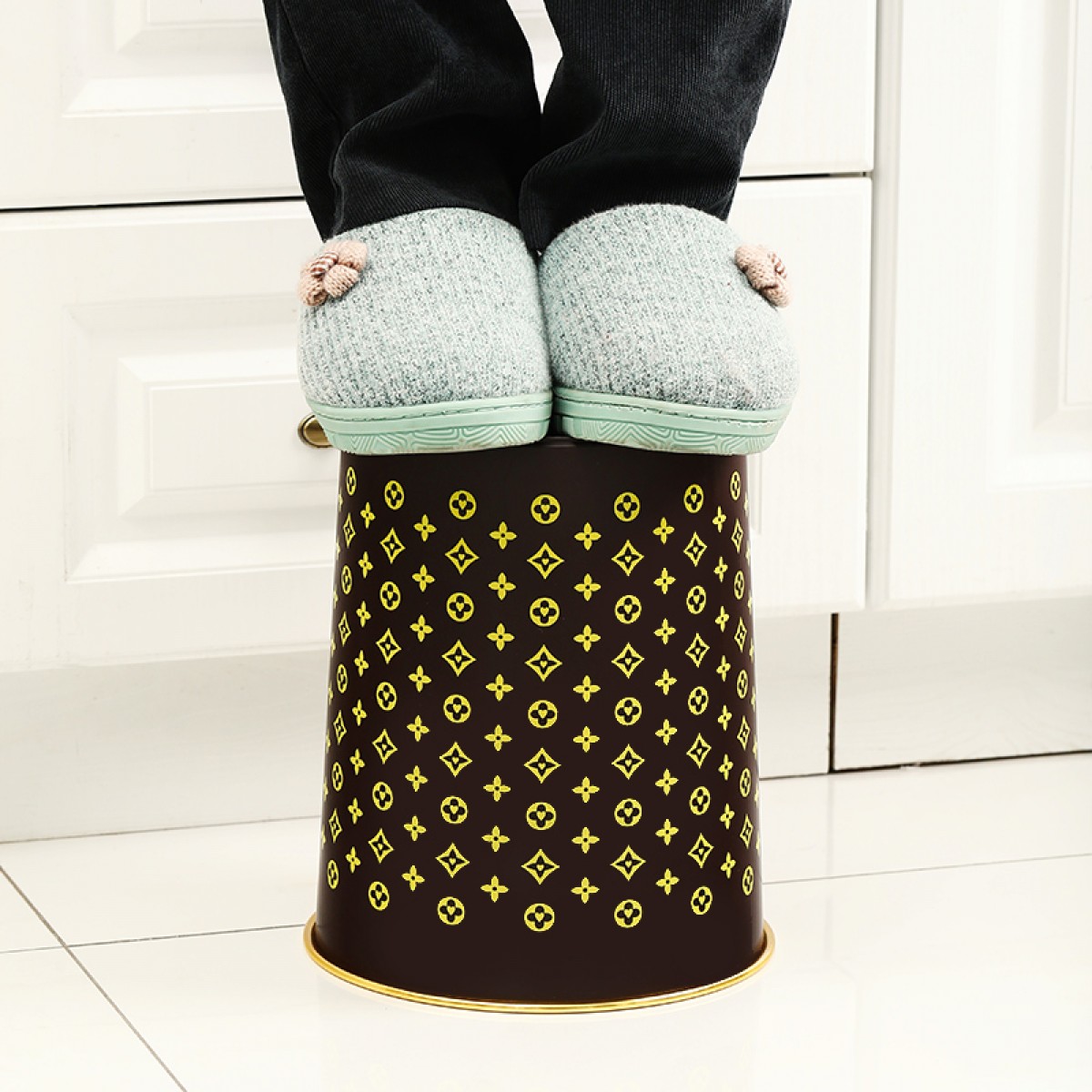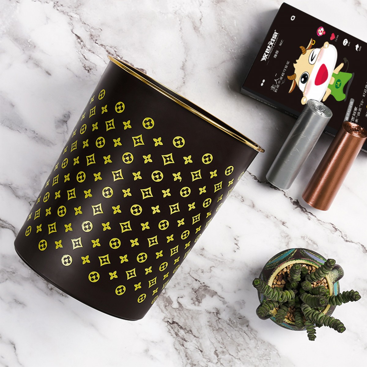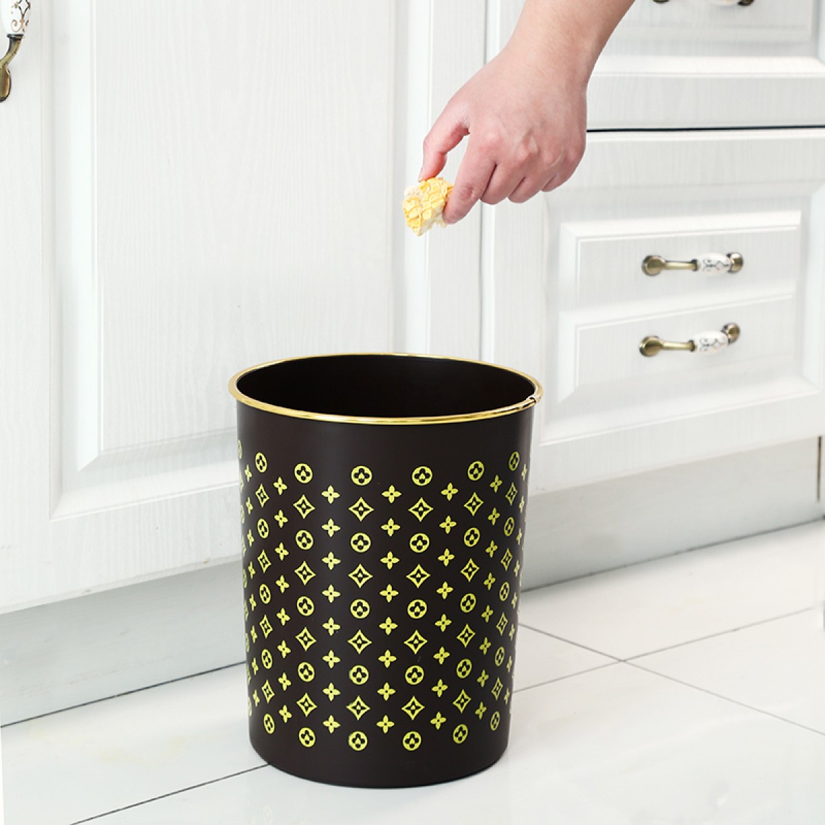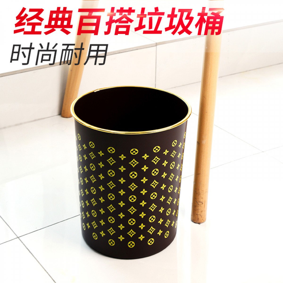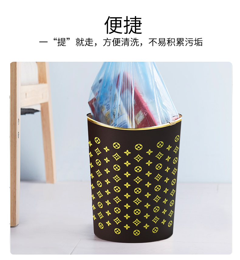 商品名称:国产 垃圾篓欧式创意时尚垃圾桶金边无盖酒店家用厨房卫生间HSLJ-1247