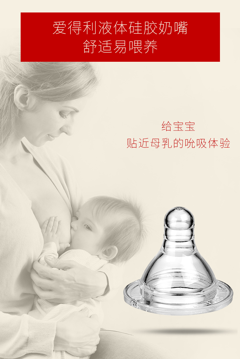 商品名称:爱得利 婴儿奶嘴新生儿液体硅橡胶奶嘴 S/M/L/十字孔 单粒装