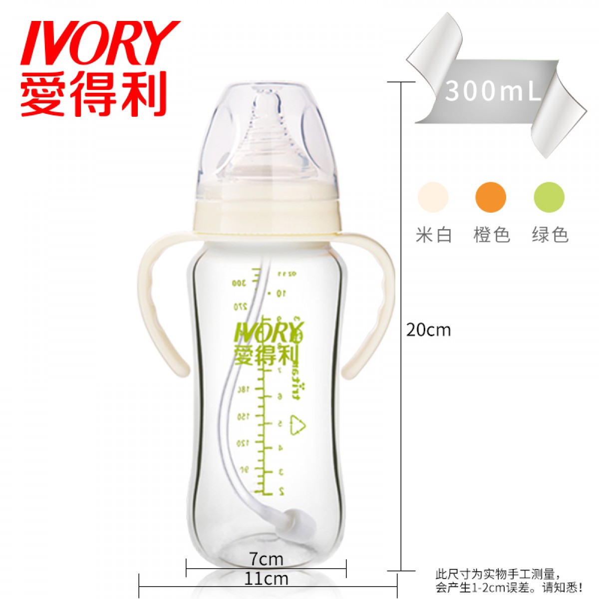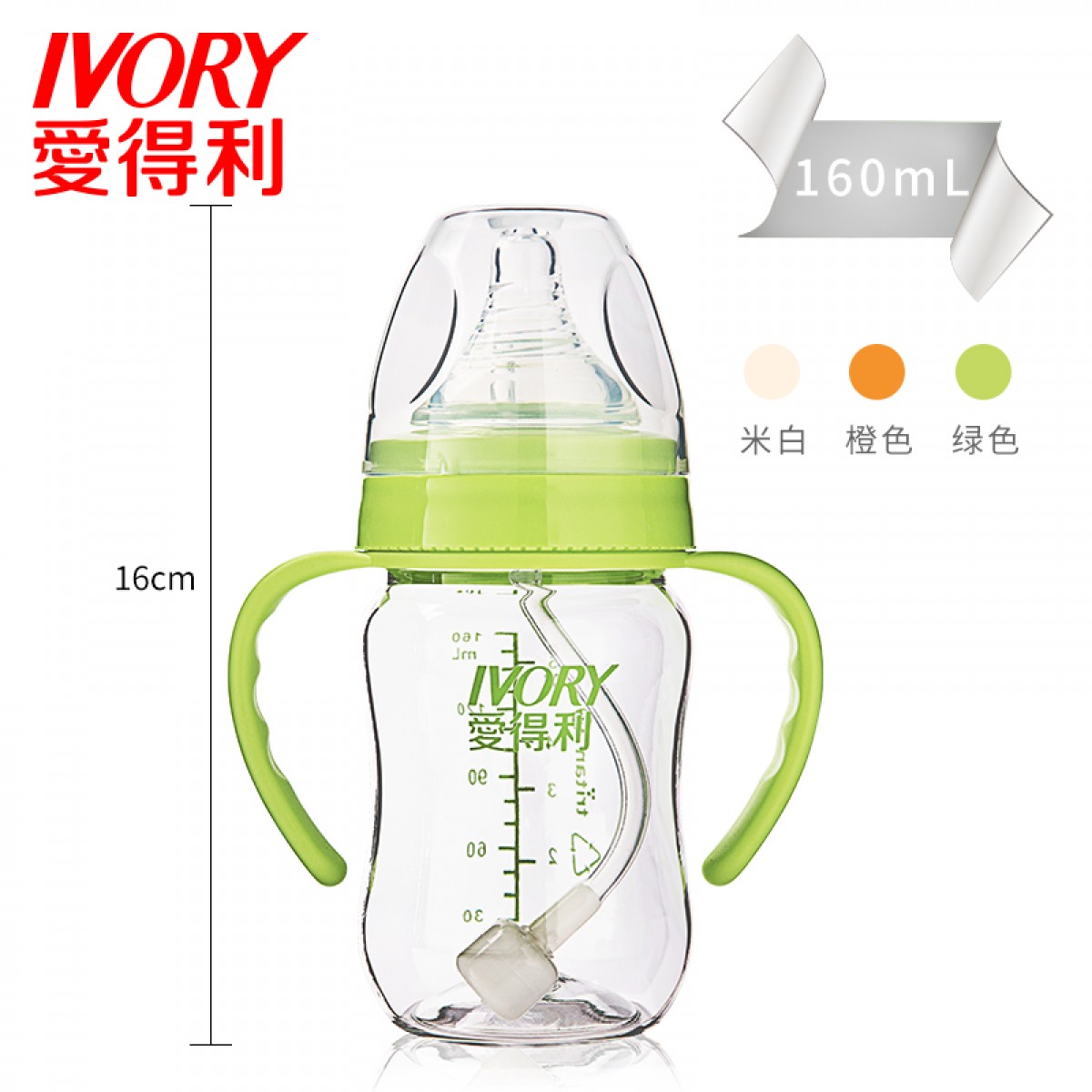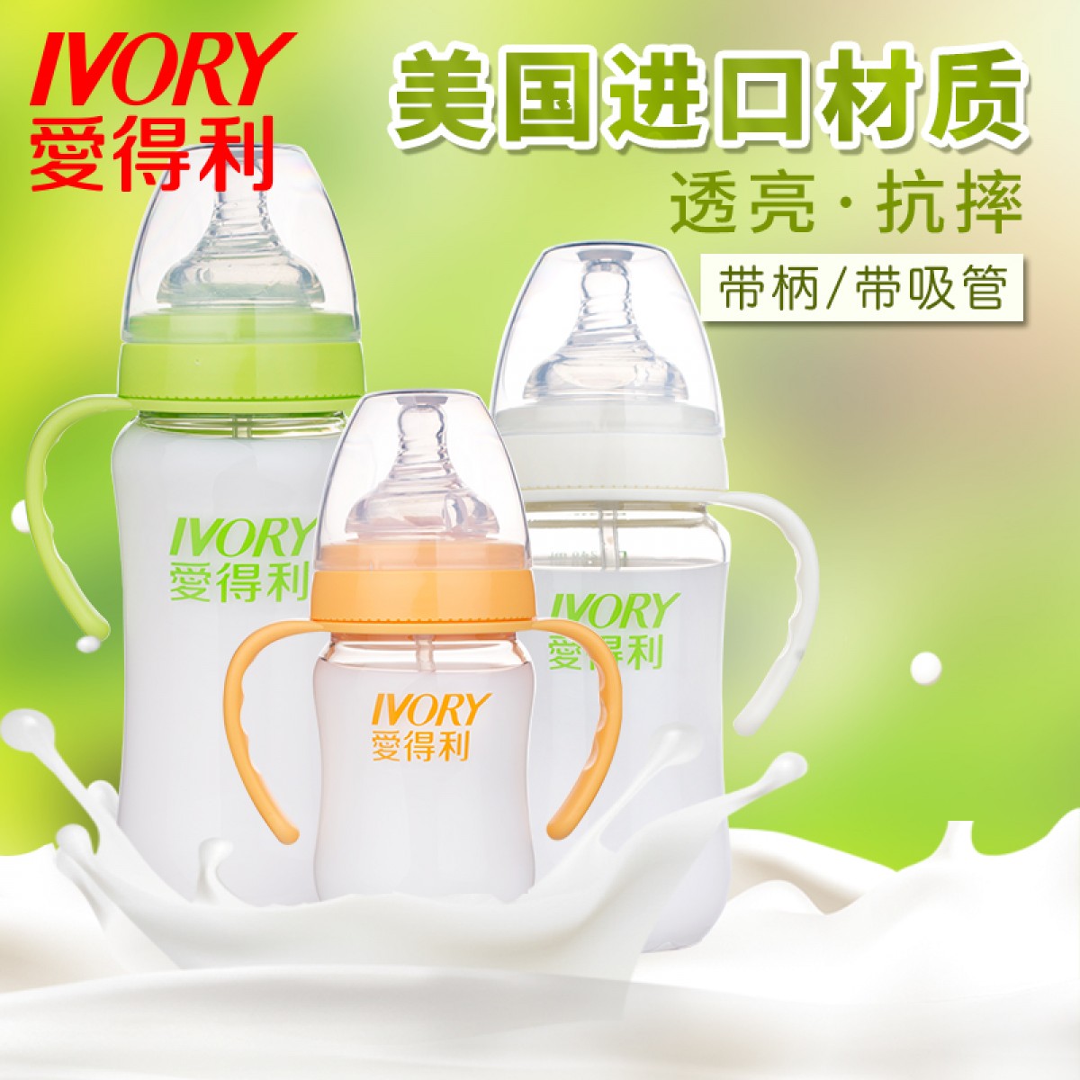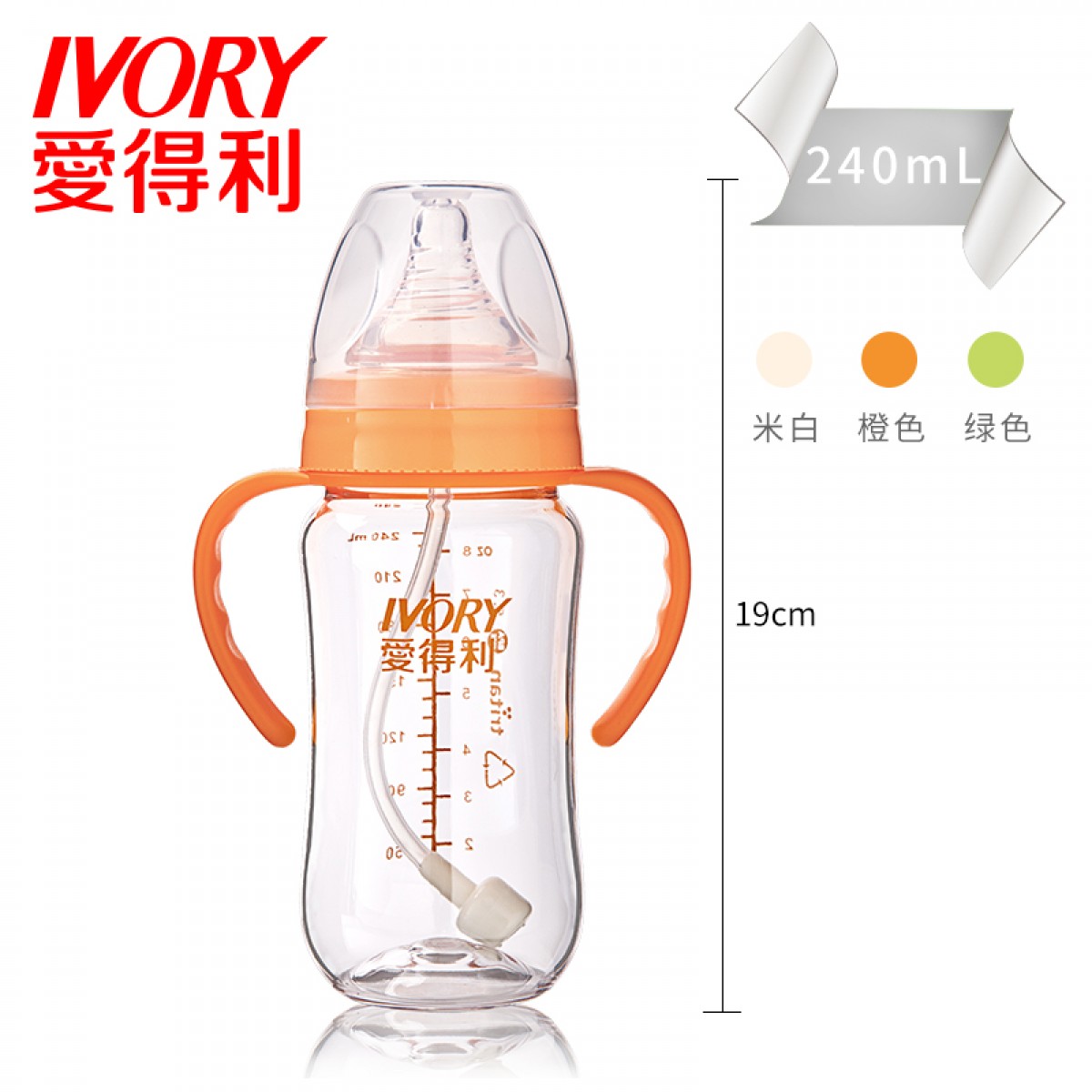 商品名称:爱得利 奶瓶婴儿宽口宝宝奶瓶Tritan特丽透带手柄吸管耐摔奶瓶塑料
