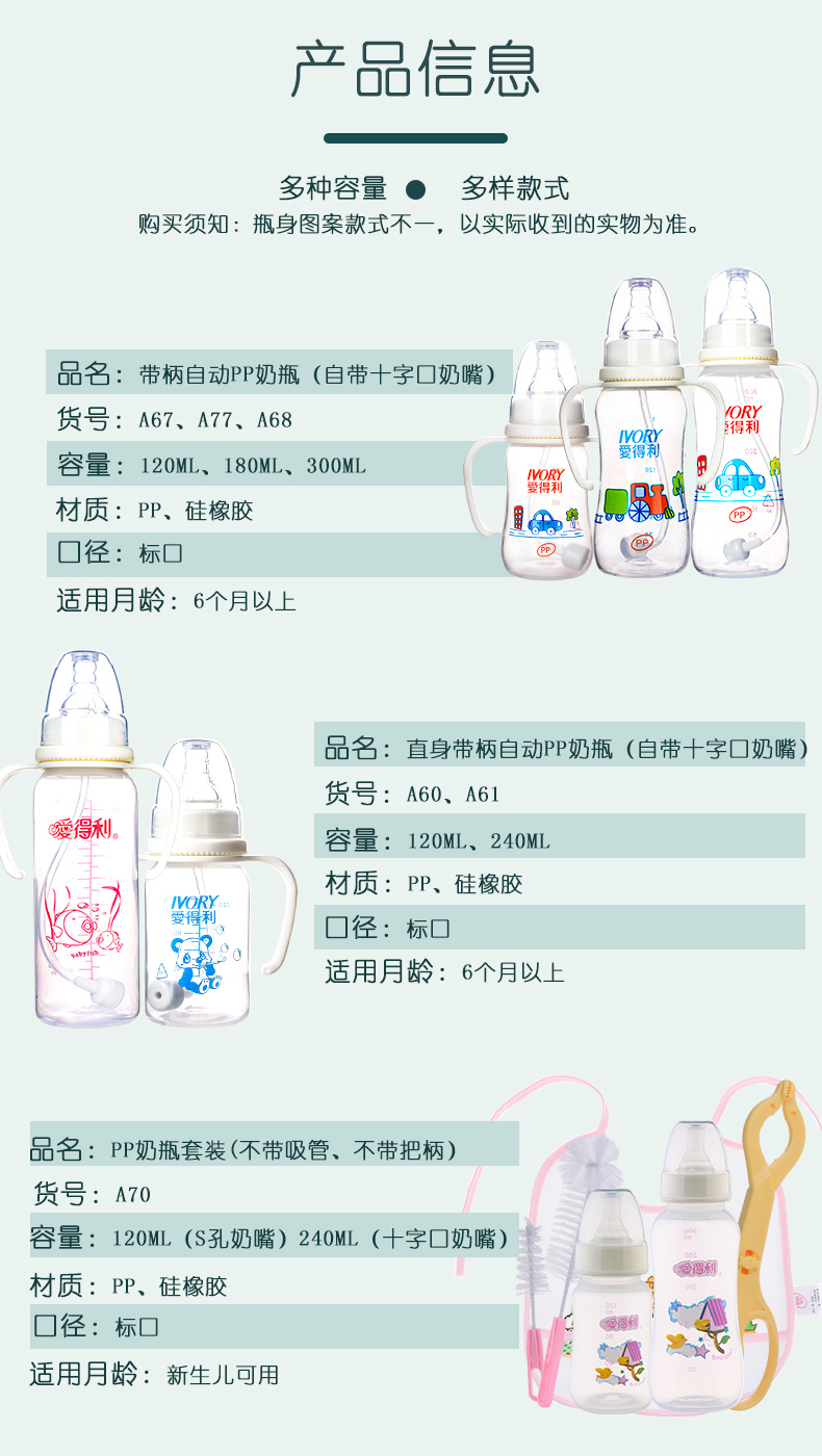 商品名称:爱得利 宝宝奶瓶塑料PP标准口径婴儿奶瓶多种容量可选