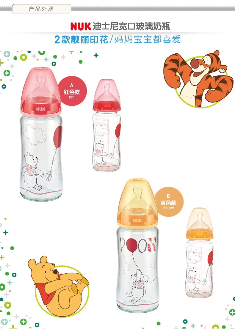 商品名称:NUK 奶瓶NUK迪士尼宽口玻璃奶瓶240ml带初生型硅胶中圆孔奶嘴