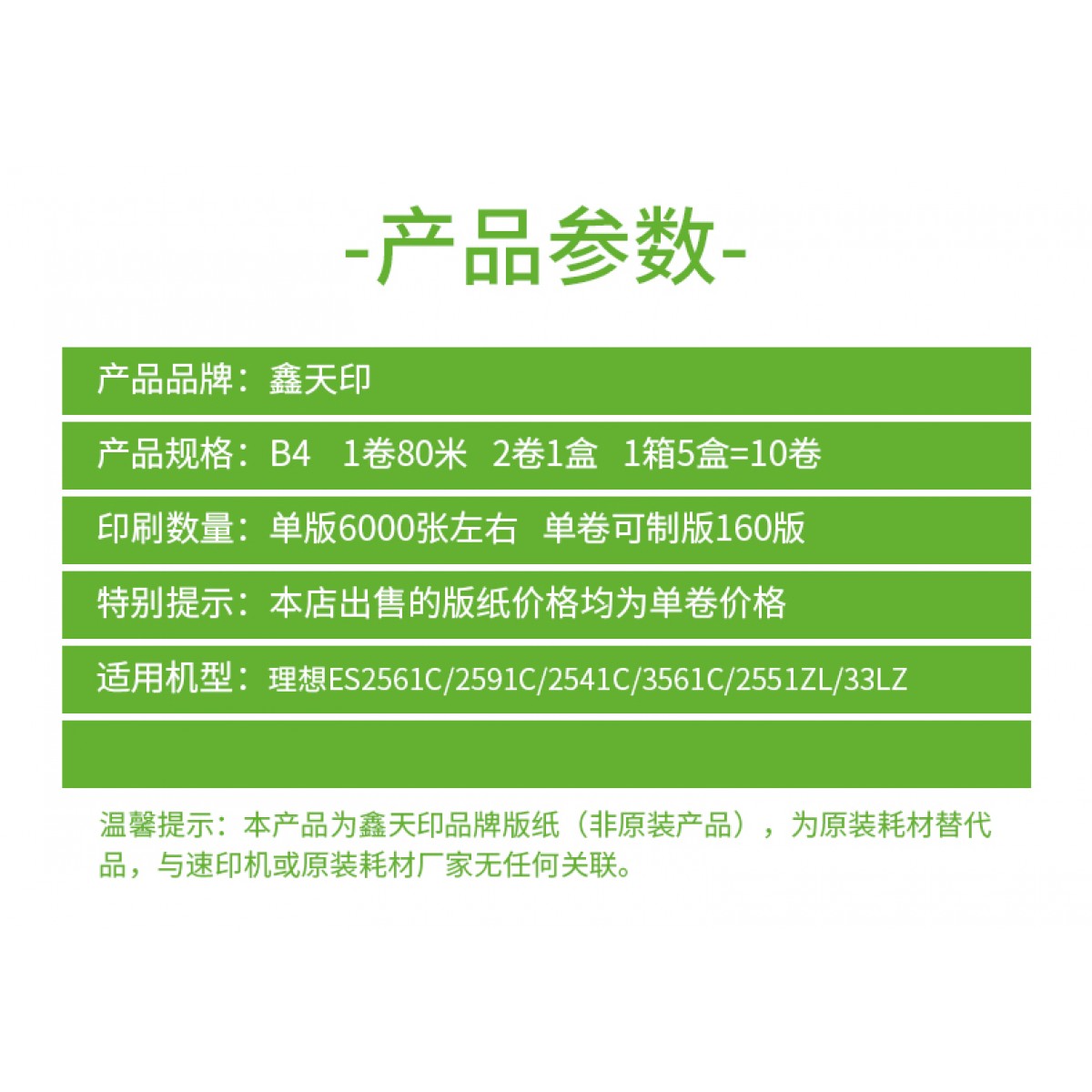 商品名称:鑫天印 适用理想RZ230N 220 330速印机版纸RV2450 2460 2490 3460 3490数码印刷机蜡纸EV2560 2590 2550版纸B4
