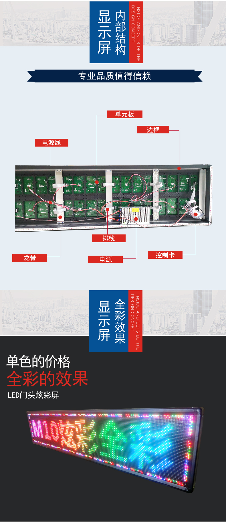 商品名称:国产 LED显示屏门头全彩炫彩M10走字屏高亮全彩门头高清滚动字幕屏 P10
