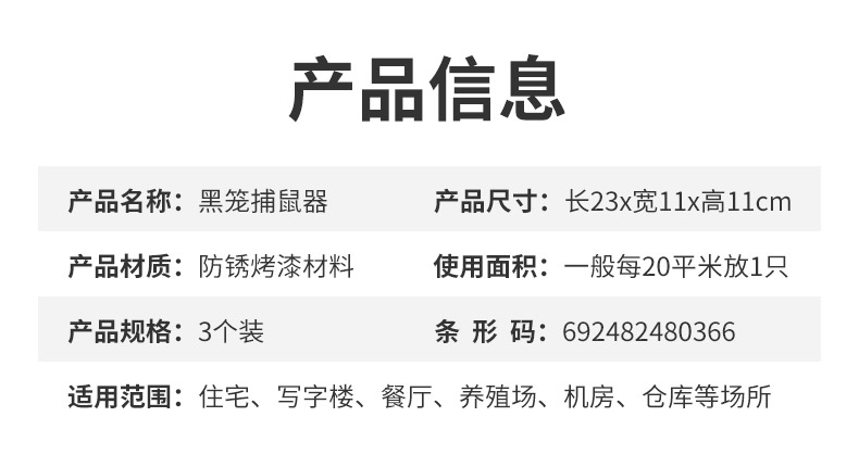商品名称:国产 抓老鼠笼子捕鼠器家用高效全自动连续补逮灭鼠克星夹子捉老鼠神器