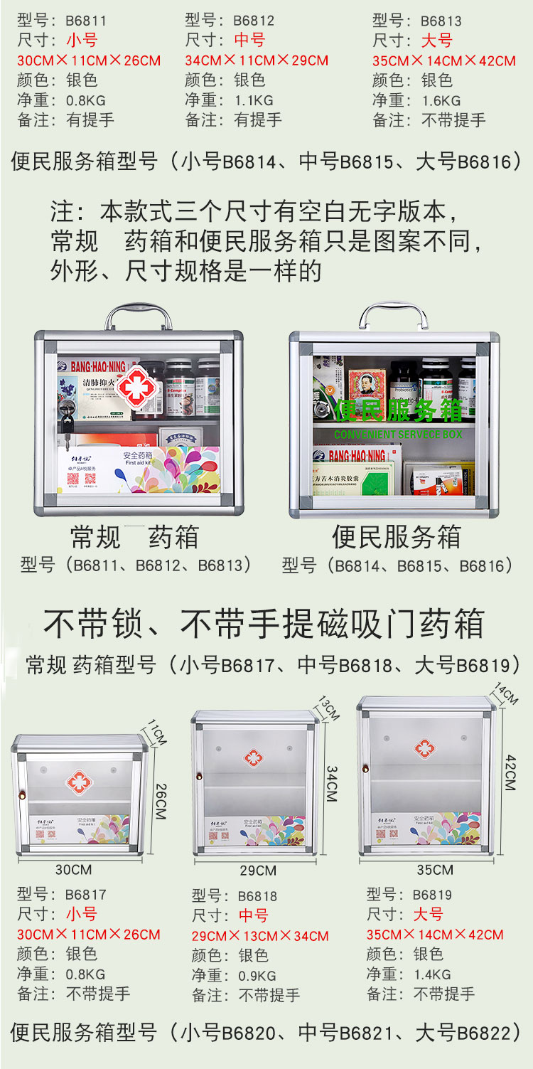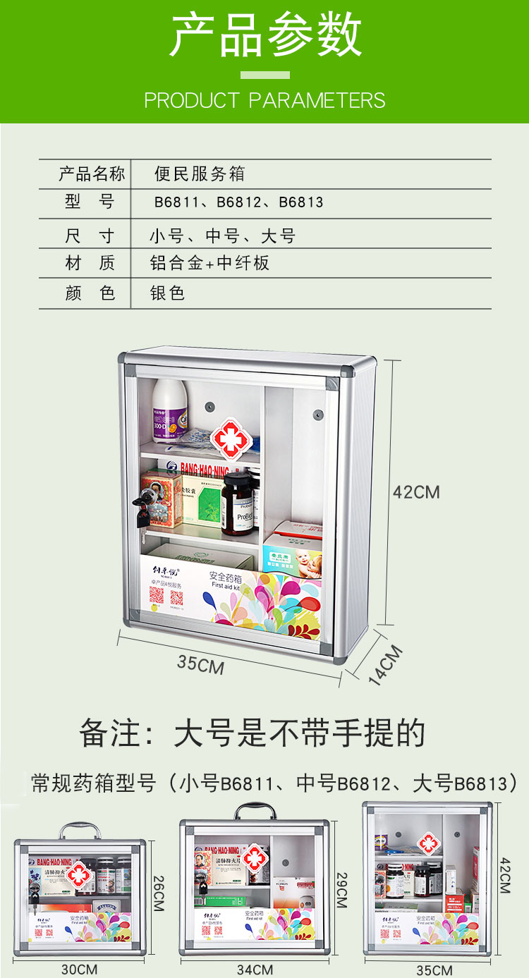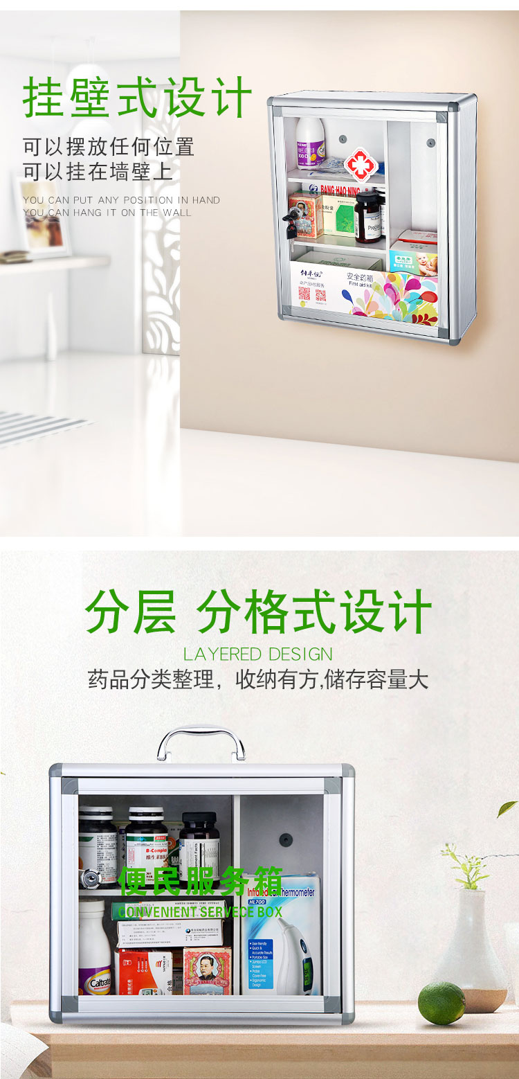 商品名称:国产 家庭家用壁挂式药箱便民服务箱药品应急急救收纳箱特大