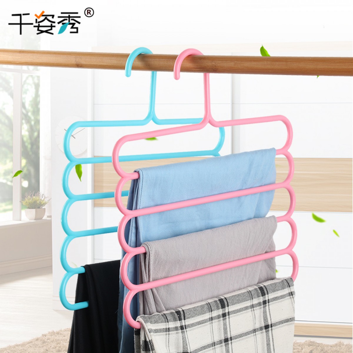 商品名称:国产 家用五层裤架裤夹衣柜裤衣架裤挂毛巾围巾收纳多功能魔术s型裤夹