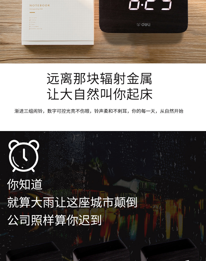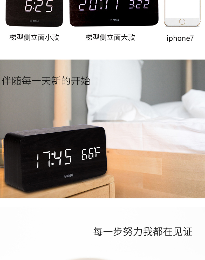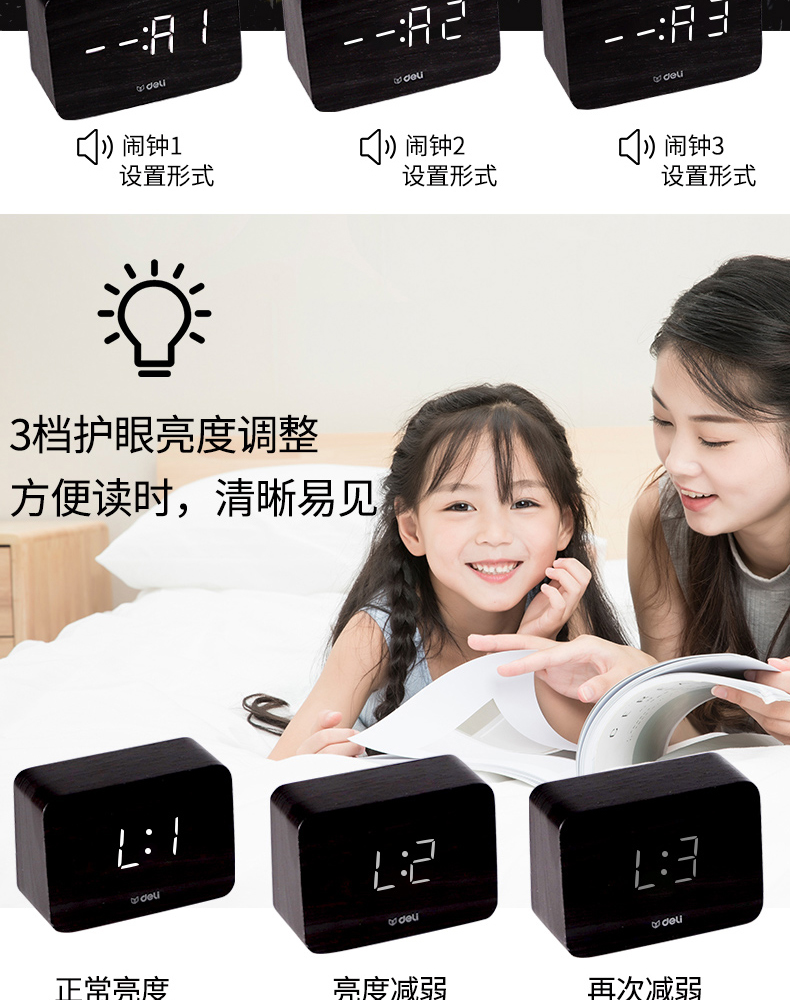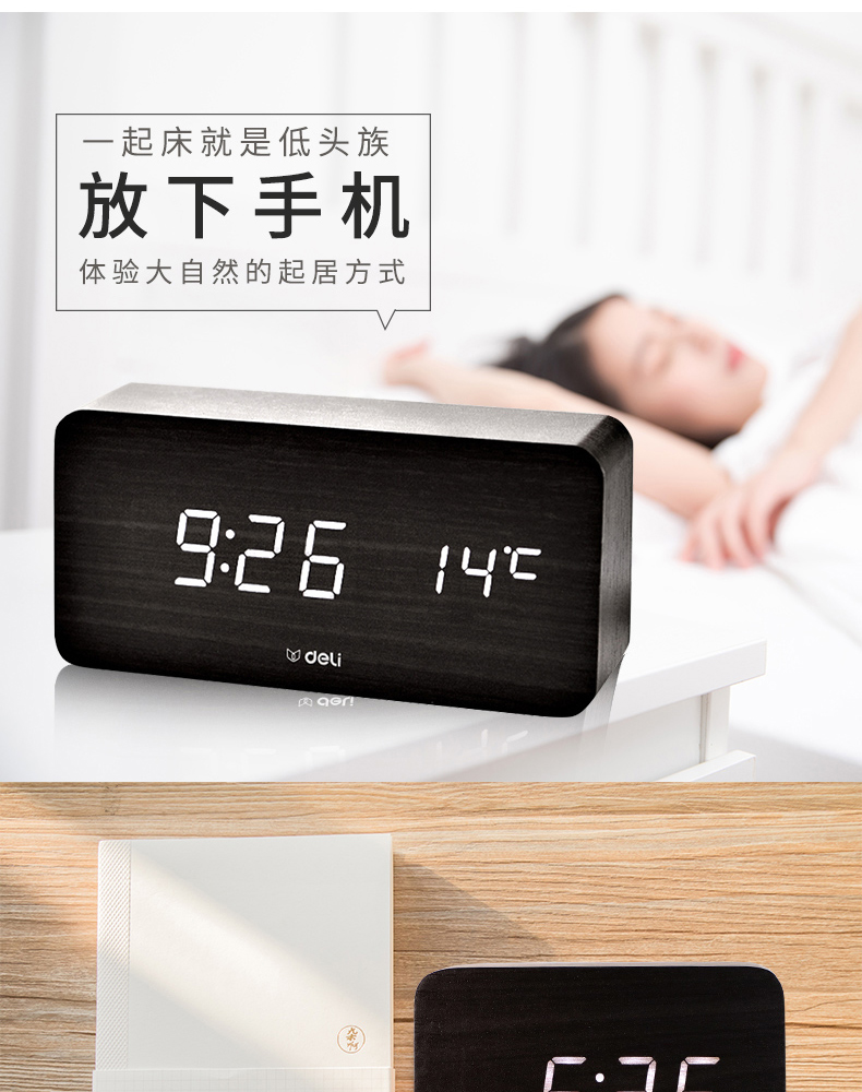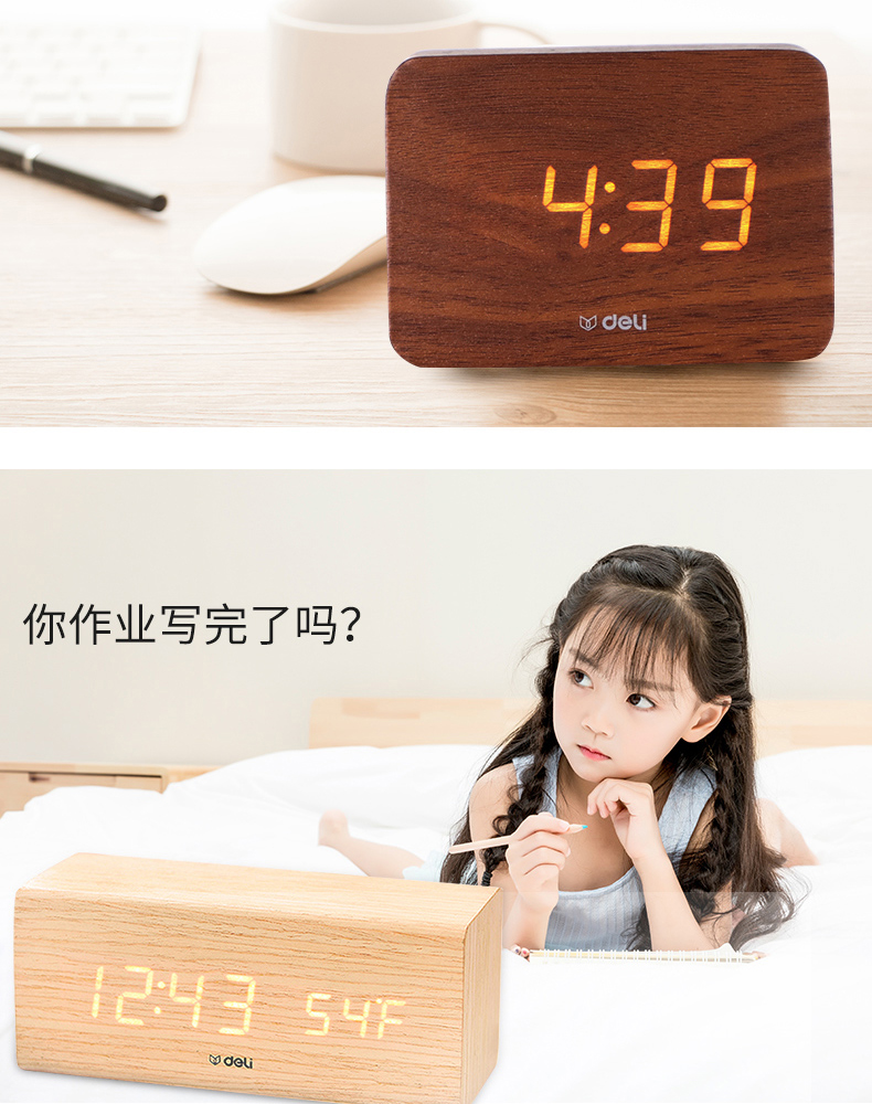 商品名称:得力 学生创意小闹钟多功能卧室静音夜光简约智能数字电子床头时钟