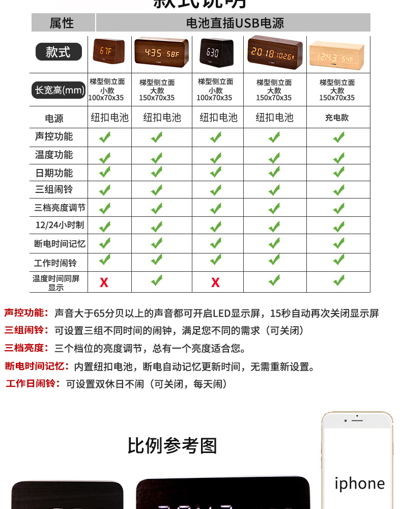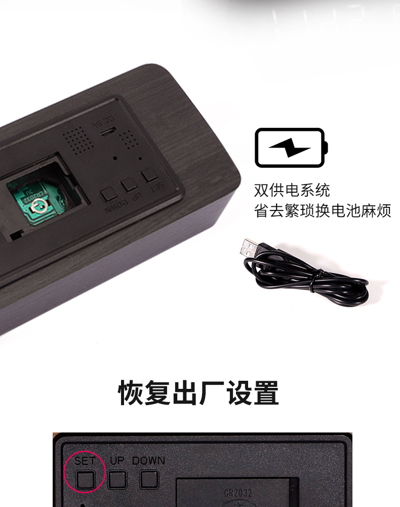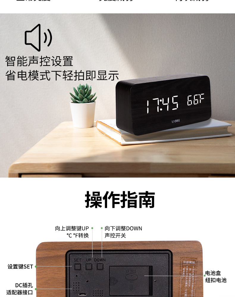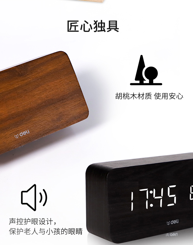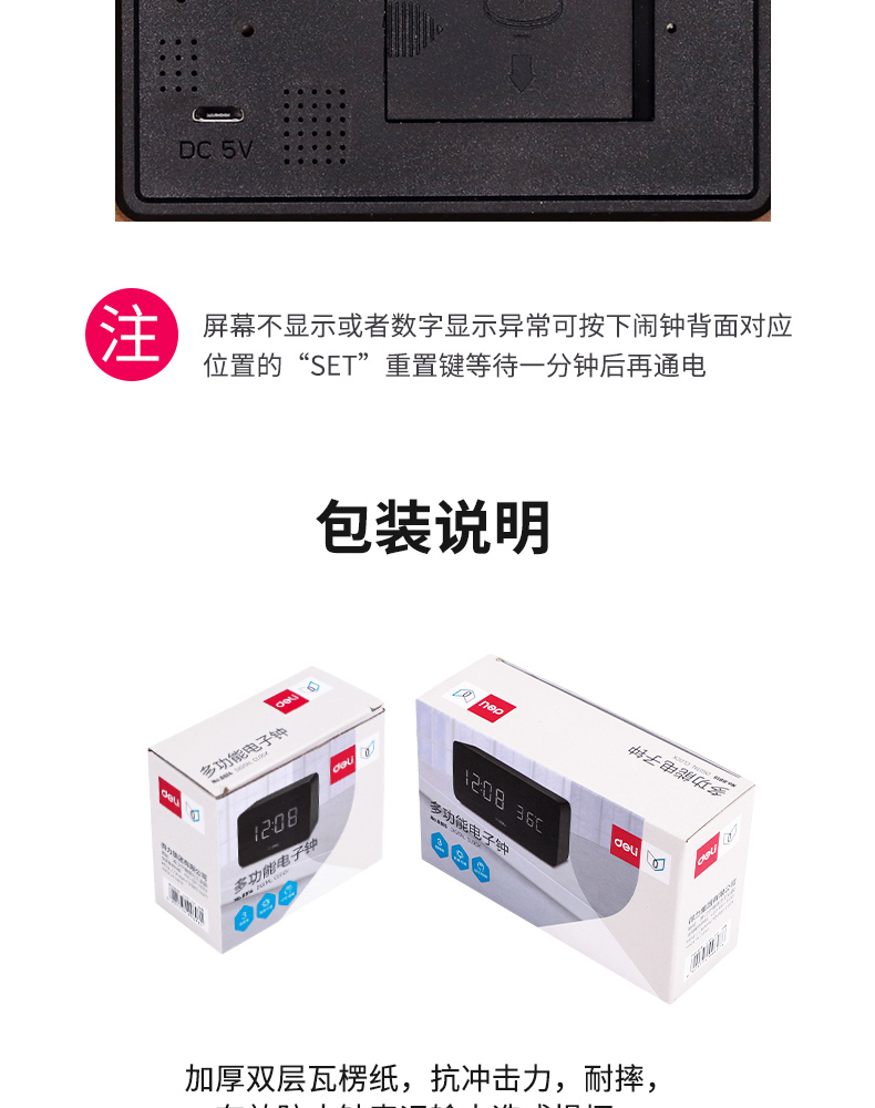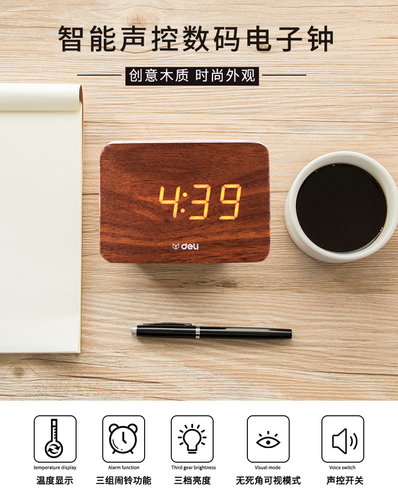 商品名称:得力 学生创意小闹钟多功能卧室静音夜光简约智能数字电子床头时钟