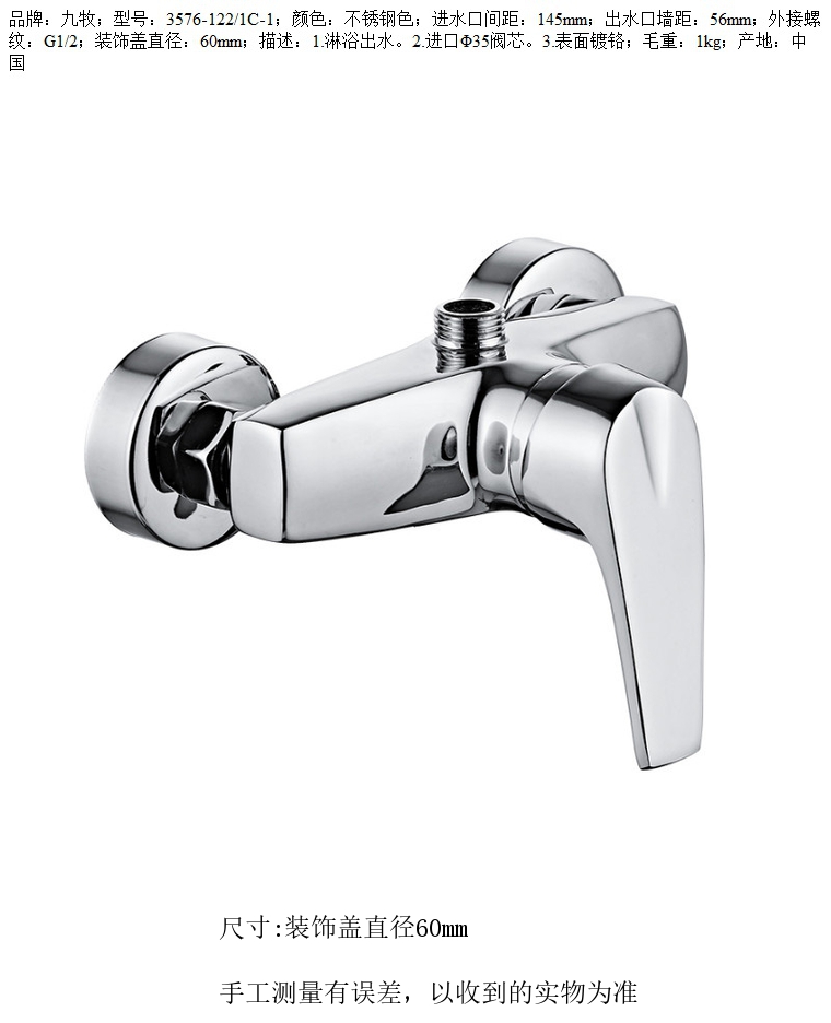 商品名称:九牧 太空铬淋浴龙头(不锈钢色)(单位:个) 3576-122/1C-1