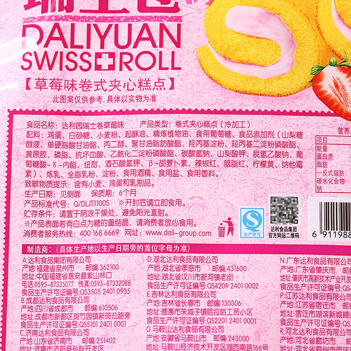商品名称:达利园 草莓瑞士卷 240g
