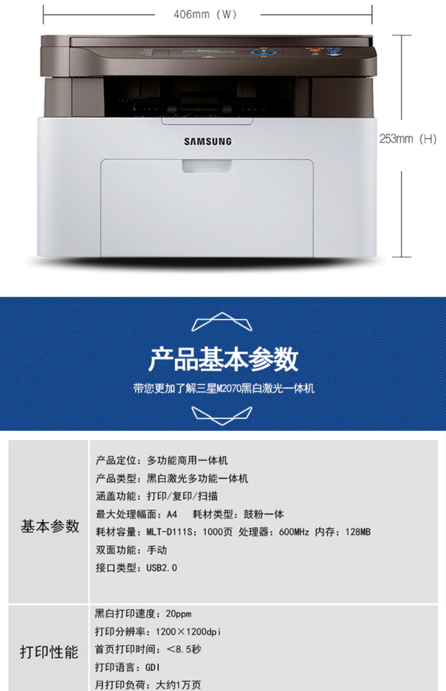 颜色分类:三星2070有线+中文,三星2070F+输稿器,三星2070W+手机WiFi打印,三星2675F带输稿器+纸盒,三星2070FW+手机WiFi+输稿器,套餐顺丰包邮质保三年