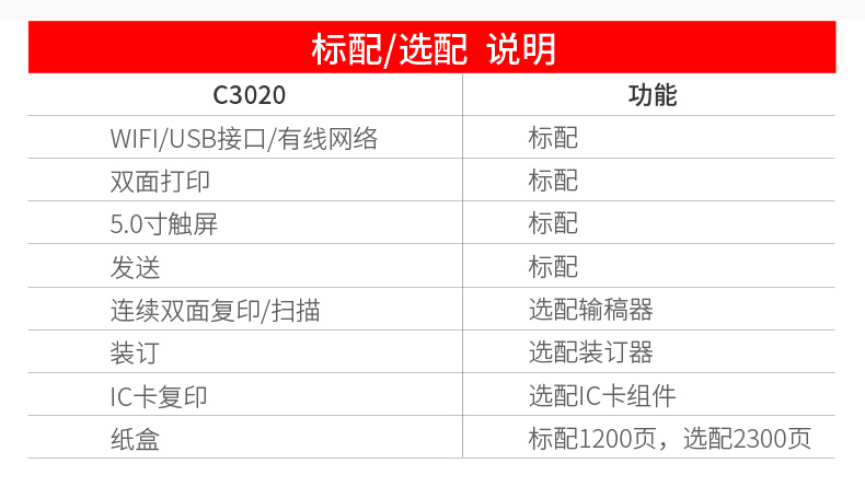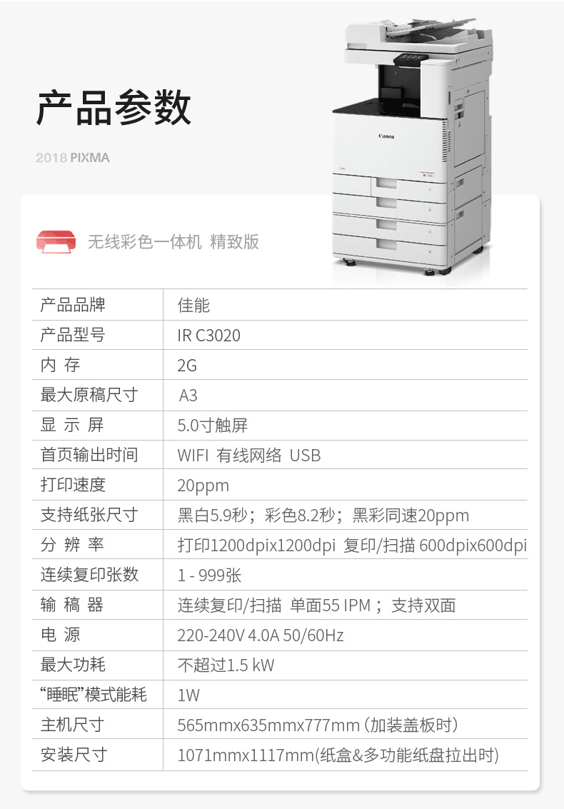 商品名称:☆佳能(CANON) C3020 (双面器/有线网络打印/1100页) 复印机