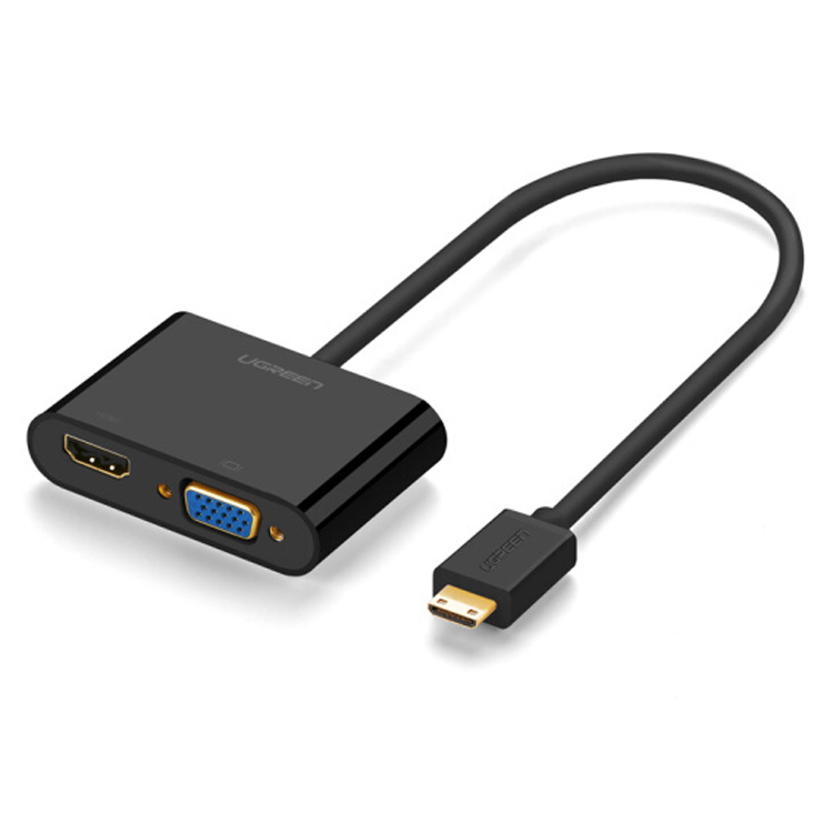 绿联二合一迷你转接头 HDMI转VGA/HDMI 4K高清 带音频 黑色 40385
