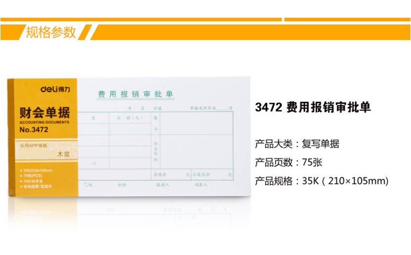 商品名称:得力/deli 35K 210x105mm 领(付)款凭证会计凭证/凭单财务单据/票据 3468