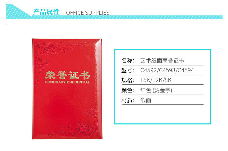 商品名称:齐心 A5 纸面荣誉证书 红 C4593