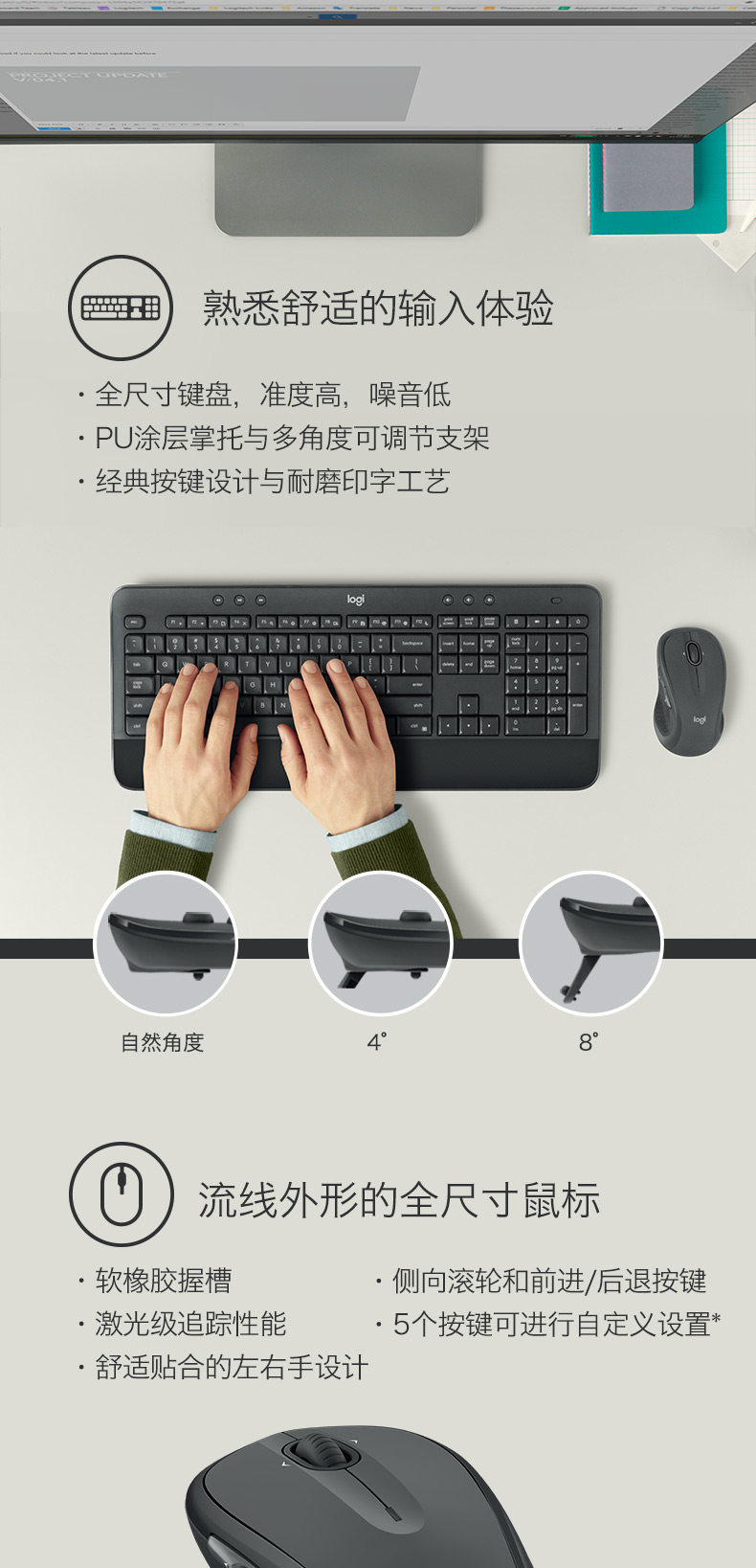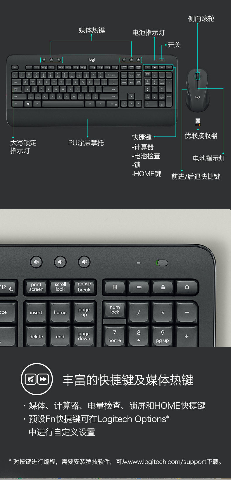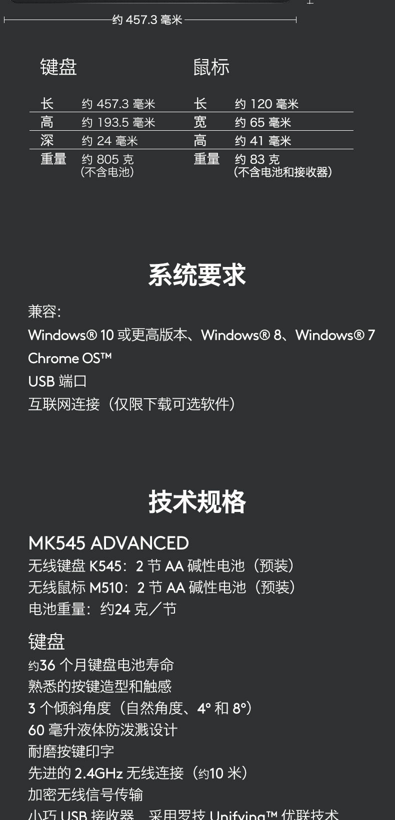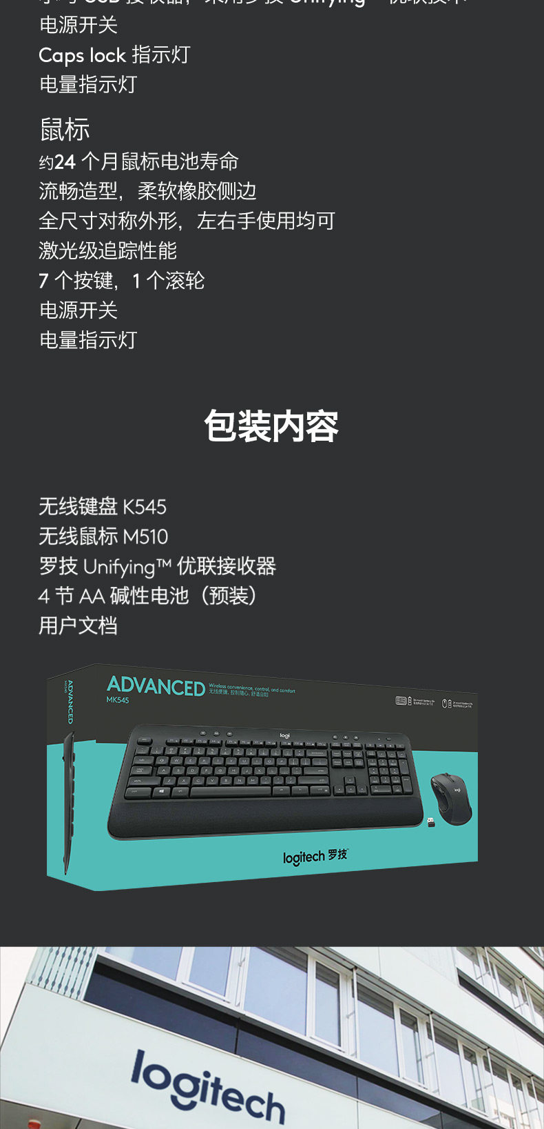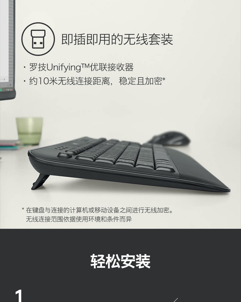 商品名称:罗技 无线键鼠套装 黑色 MK545