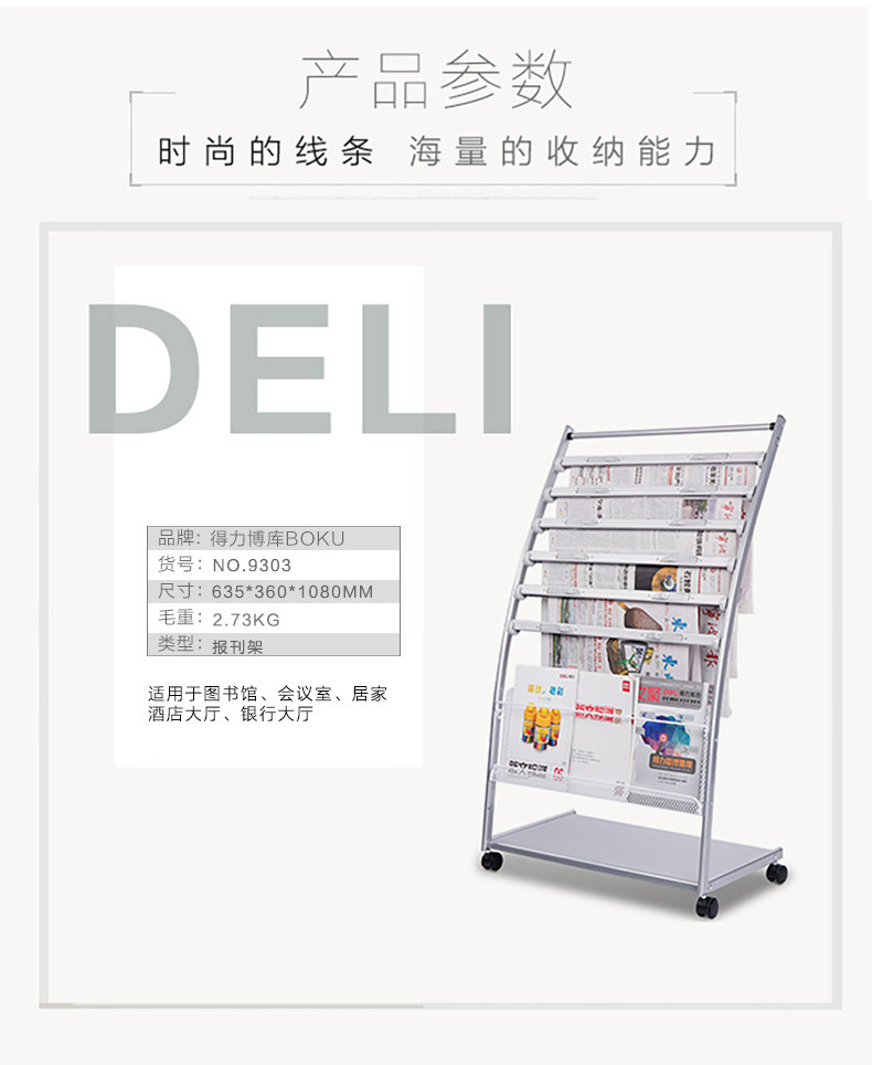 得力/deli 9302 635*360*875mm 书刊架 灰色