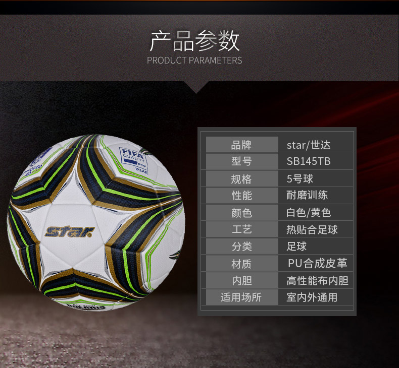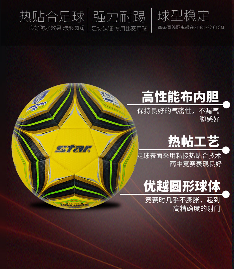 商品名称:世达 STAR 黄色 5号 高弹性 热贴合 FIFA认证 比赛足球 SB145TB-05