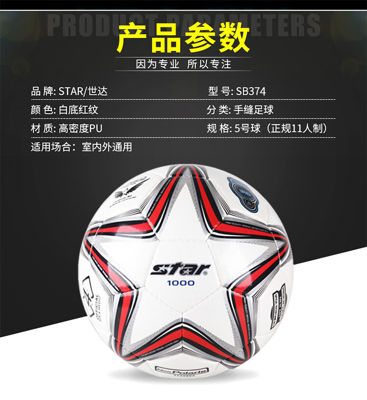商品名称:世达 STAR 超纤革 手缝 4号 青少年足球联赛用球 比赛足球 SB374