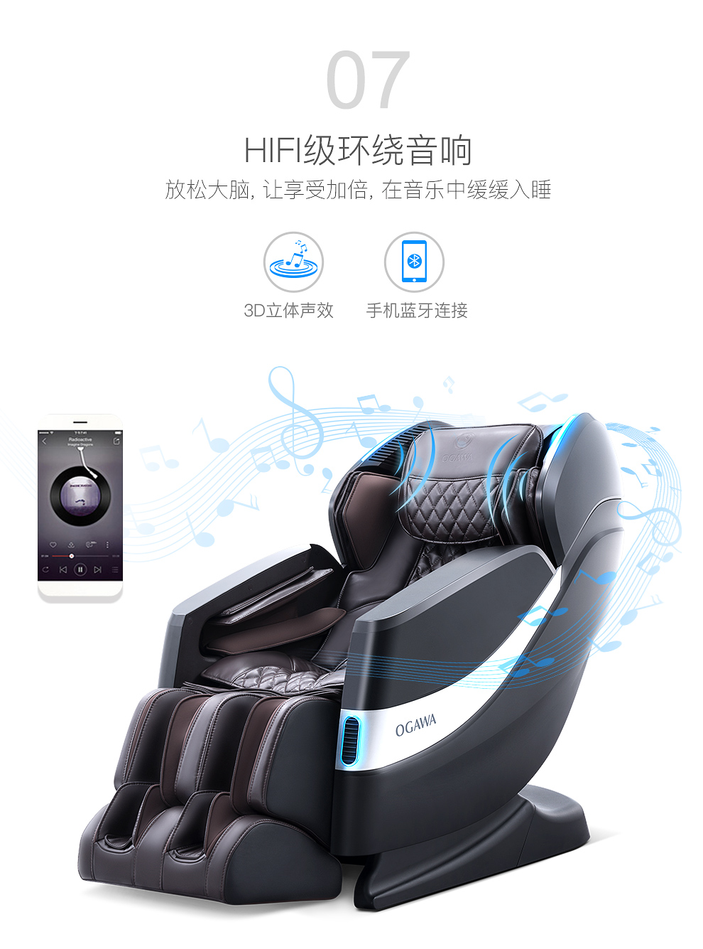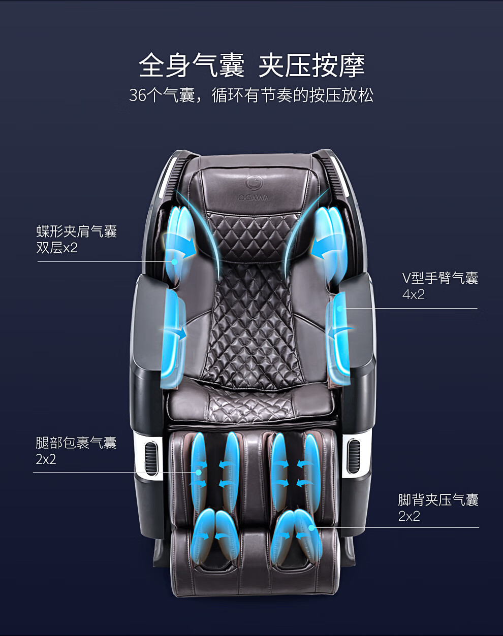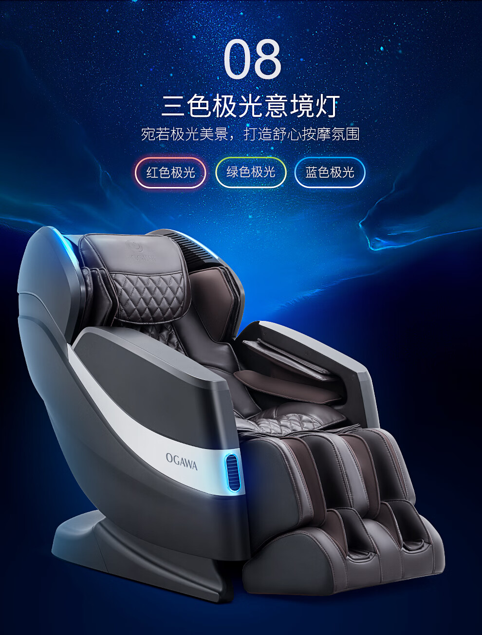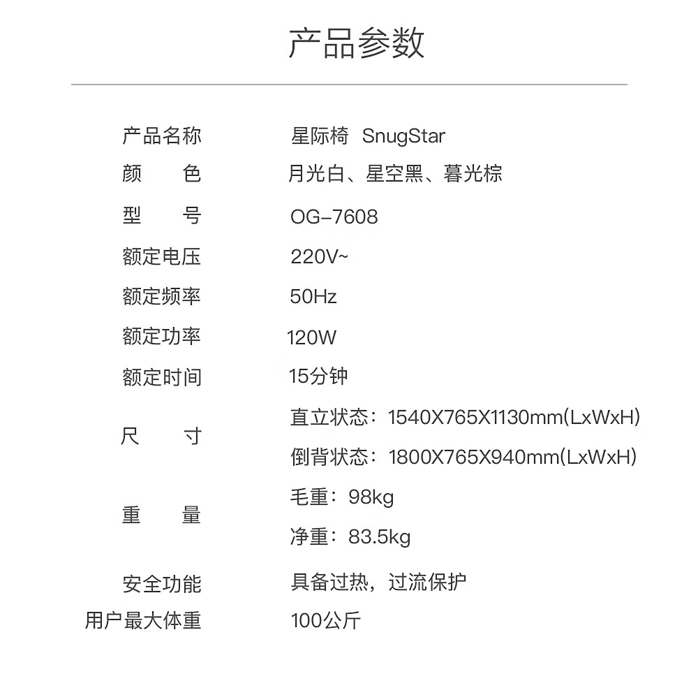 商品名称:奥佳华/OGAWA 按摩椅家用全身电动按摩沙发椅多功能全自动按摩椅子 星际椅 月光白 7608
