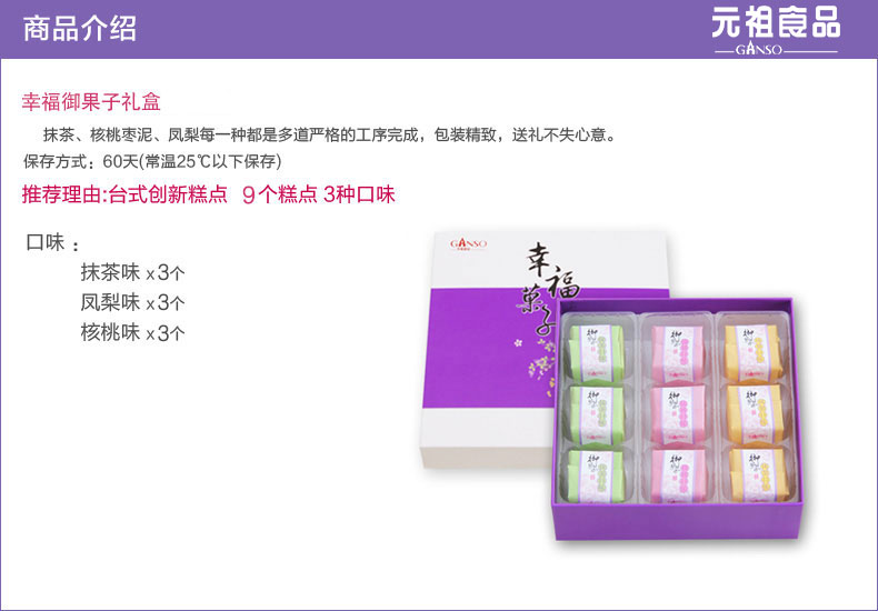 商品名称:元祖 糕点 糕点礼盒 点心零食早餐食品特产伴手礼 幸福御果子 9入/盒