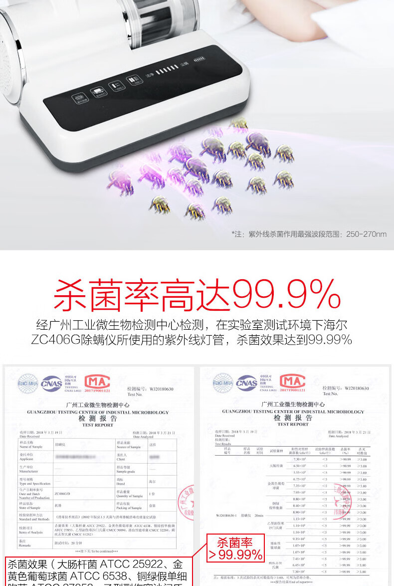 商品名称:海尔 无线除螨仪家用床上除螨虫神器紫外线杀菌除螨吸尘器 HZC1017W
