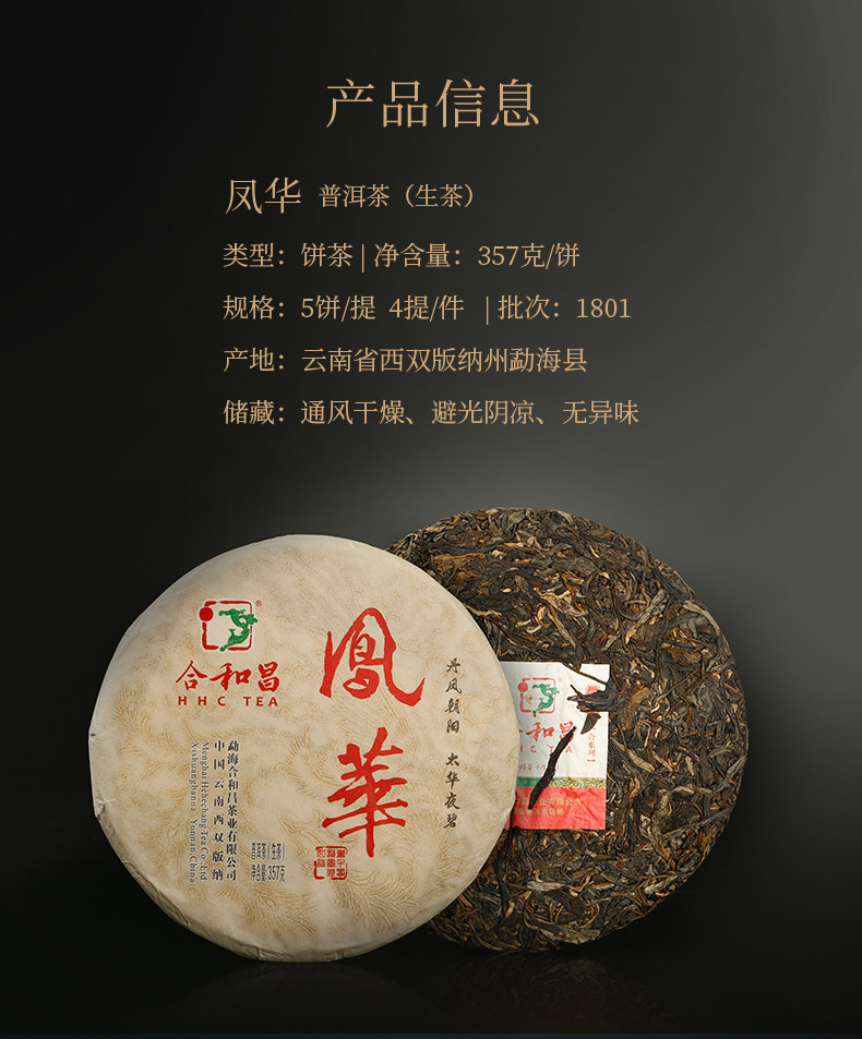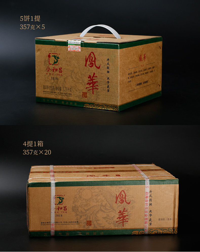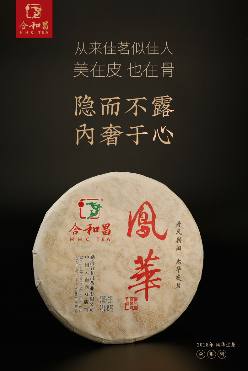 商品名称:合和昌 2018年凤华 普洱茶生茶礼盒装饼茶357g布朗山生态乔木茶叶