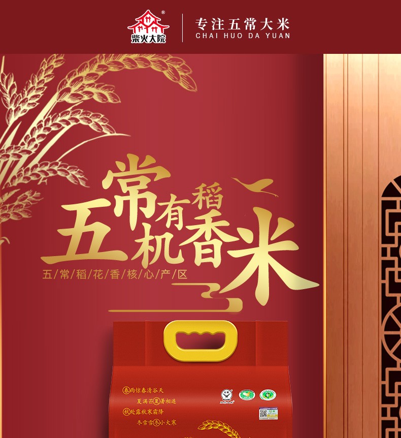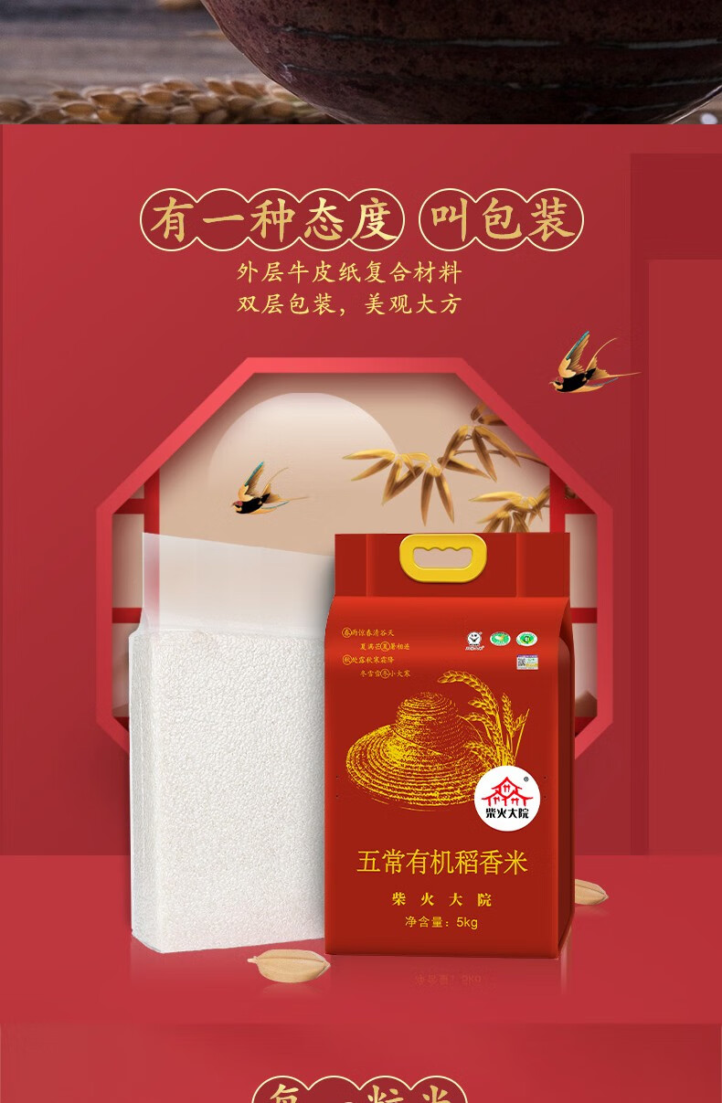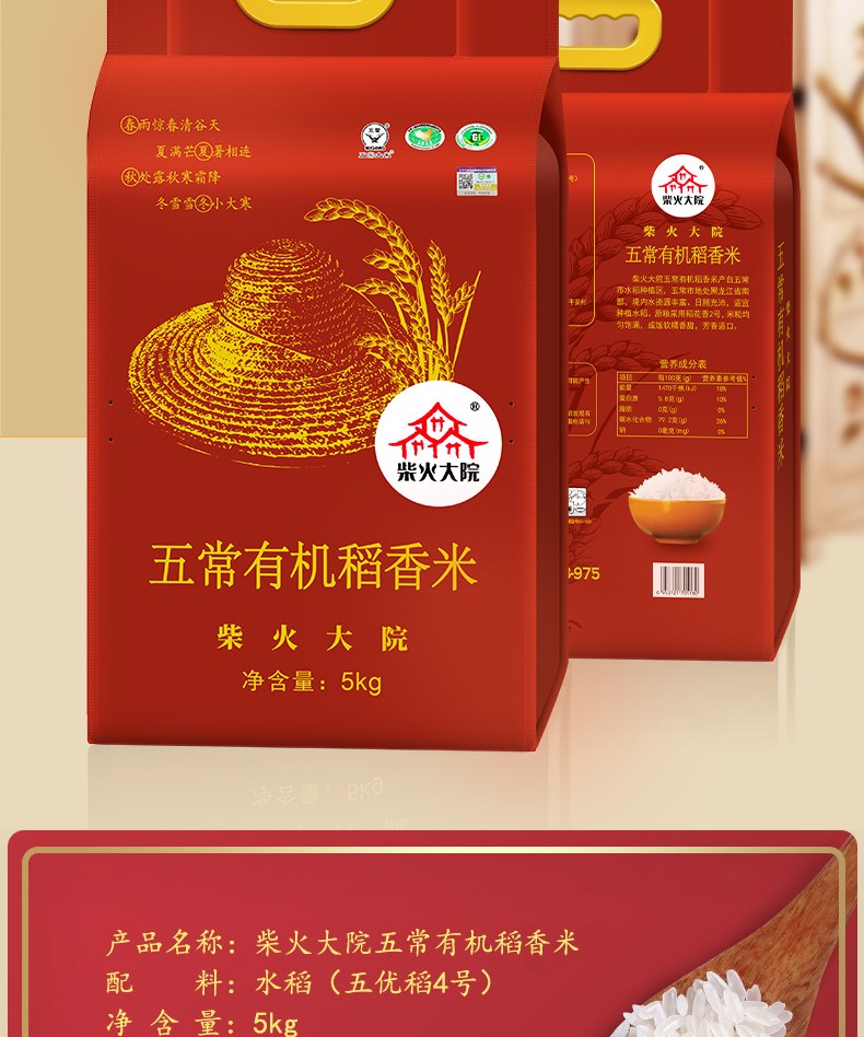 商品名称:柴火大院 五常有机稻花香大米5kg10斤东北大米五常稻花香2号
