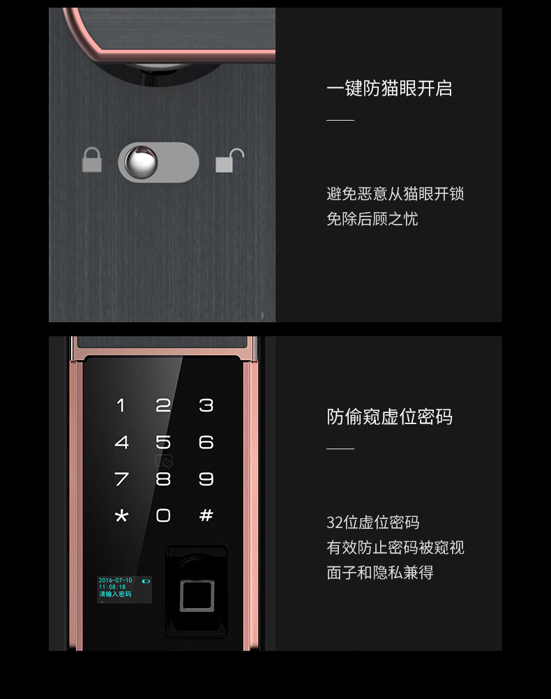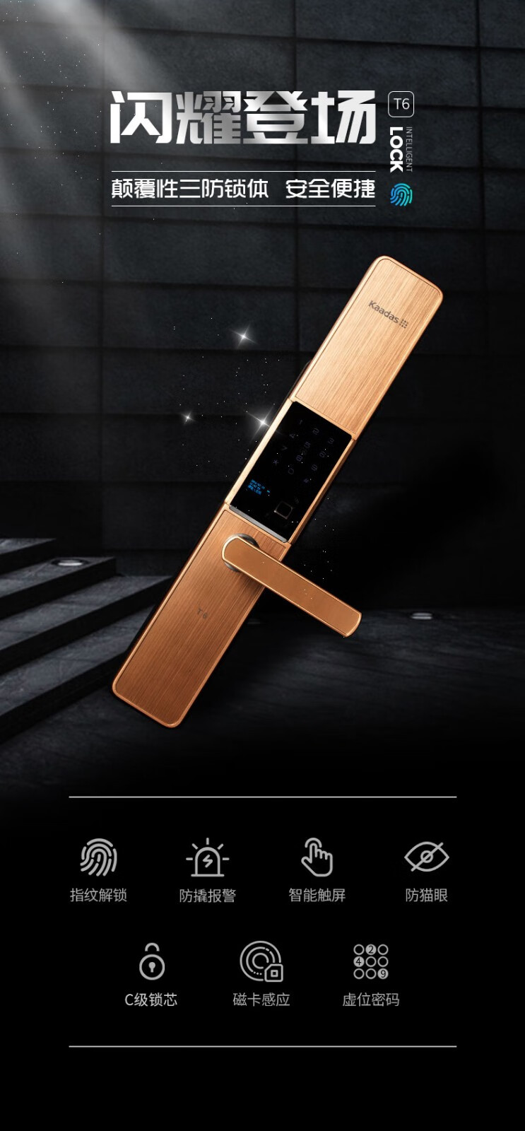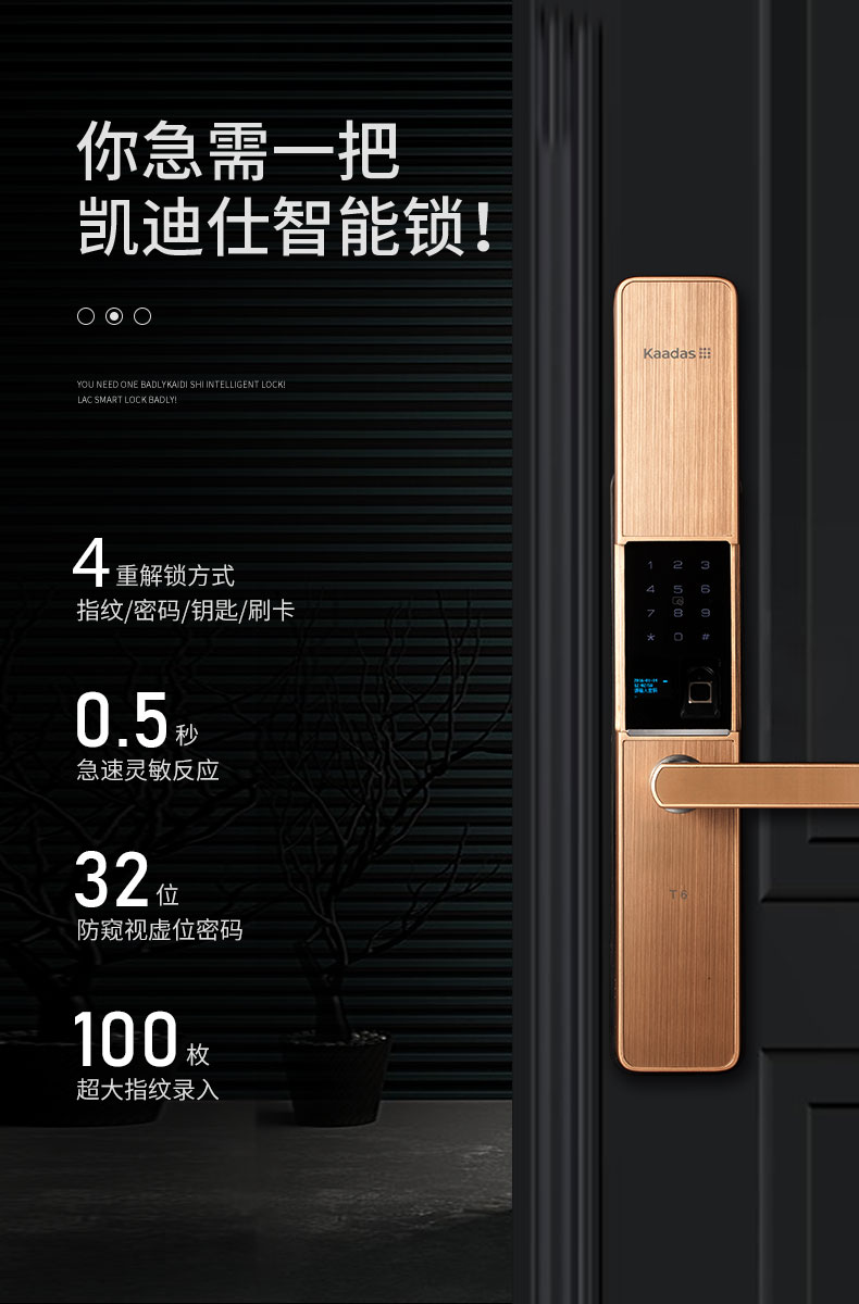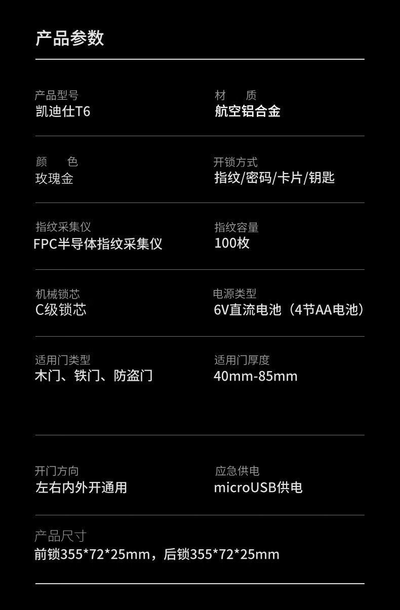 商品名称:凯迪仕(KAADAS) 指纹锁 智能锁密码锁 家用防盗门指纹锁 电子锁密码锁 玫瑰金 T6