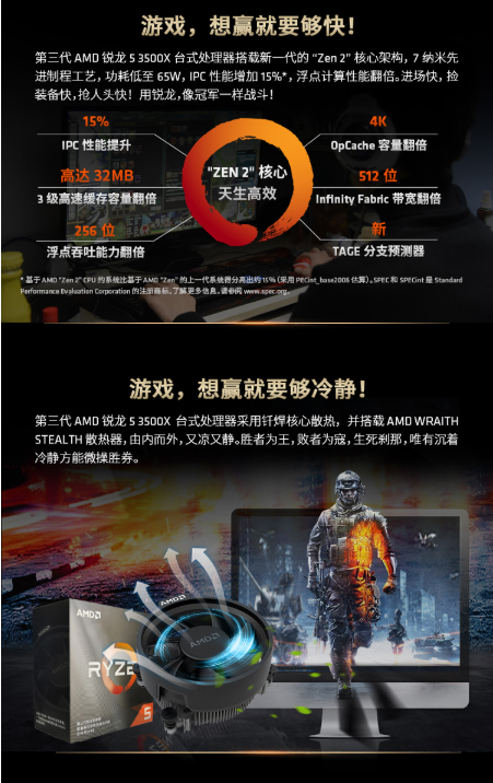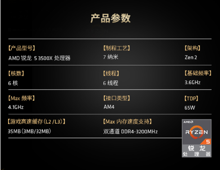 AMD 锐龙5 3500X 处理器 (R5)6核6线程3.6GHZ65W AM4接口盒装CPU