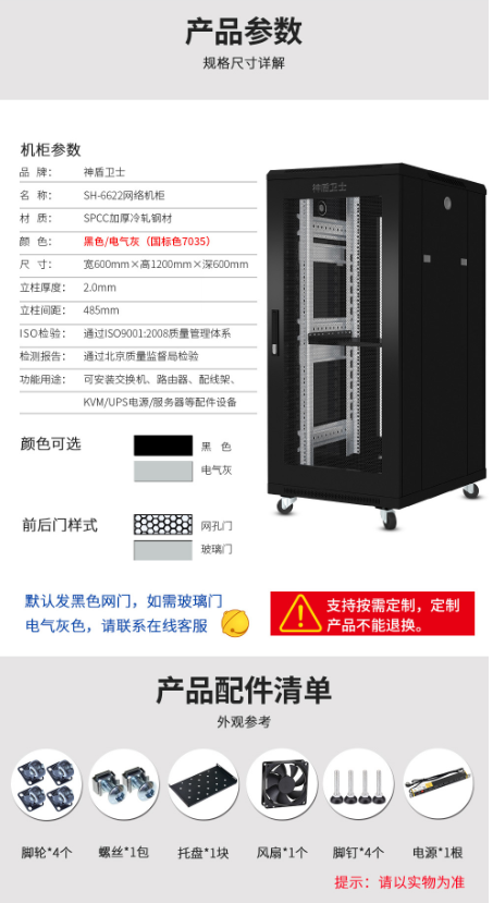 商品名称:神盾卫士 SDWS SH-6622 22U网络服务器机柜 1.2米