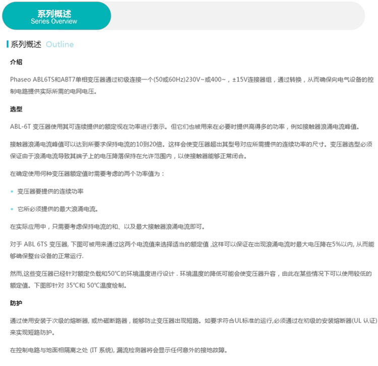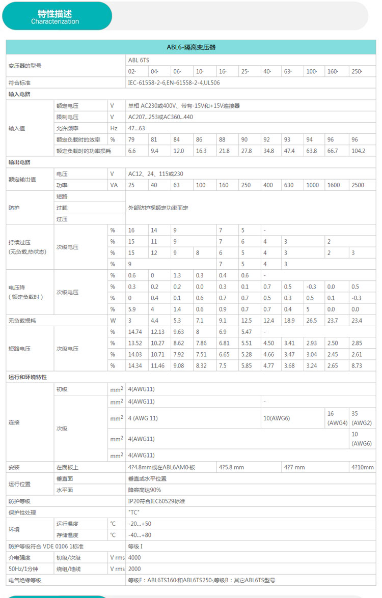 型号:单相230/400±15VACABL6TS63U隔离变压器