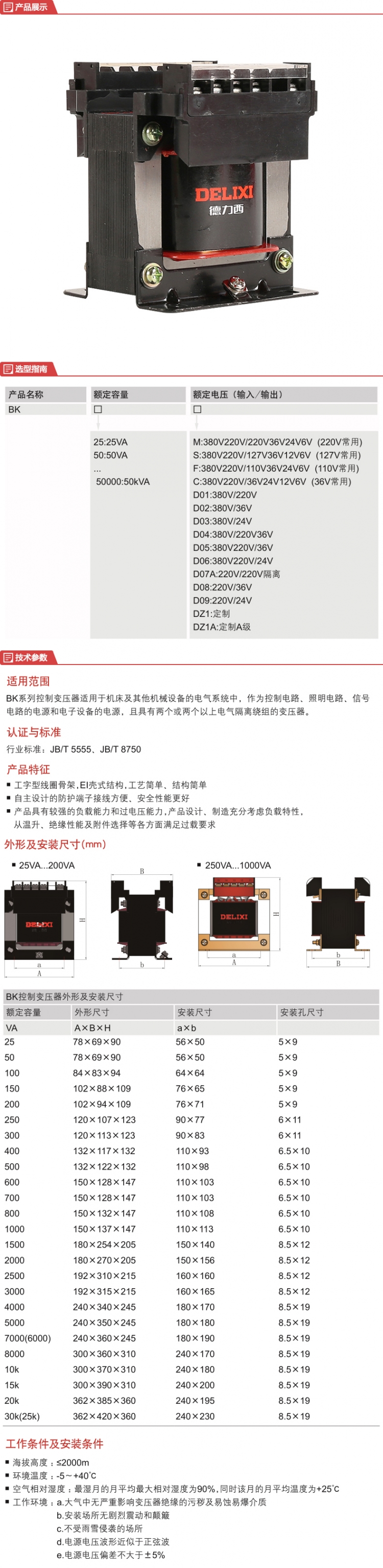 商品名称:德力西电气 DELIXI ELECTRIC BK-50VA 220V/24V 控制变压器
