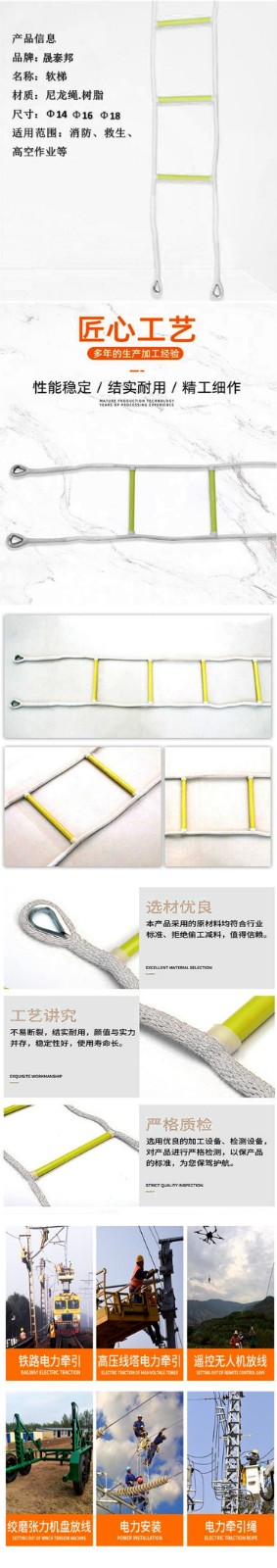 商品名称:晟泰邦 STB0249 尼龙绳软梯 白色 Φ18 (单位:米)