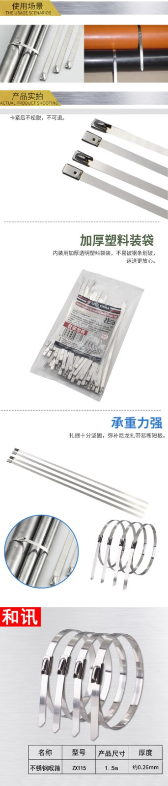 商品名称:和讯科技ZX115不锈钢喉箍1.5m(计价单位:根)