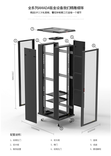 商品名称:安普康 AMPCOM AM61042 机柜42U 网络机柜 600*1000*2000