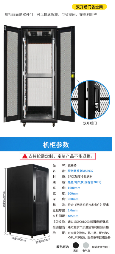 商品名称:麦森特 MAXCENT SA6932 服务器机柜 1.6米