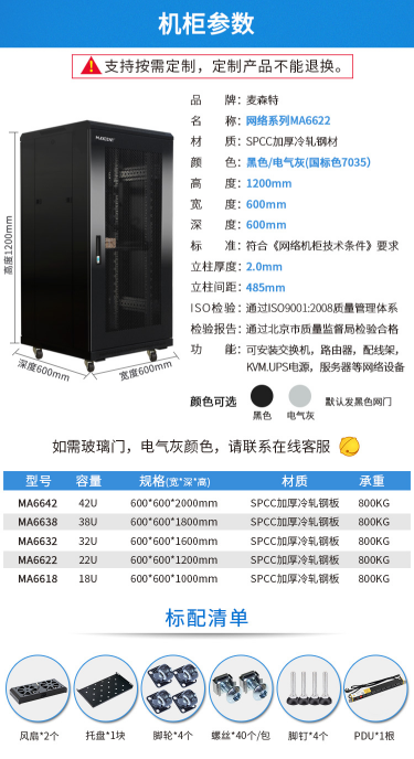 商品名称:麦森特 MAXCENT MA-6622 网络服务器机柜 1.2米