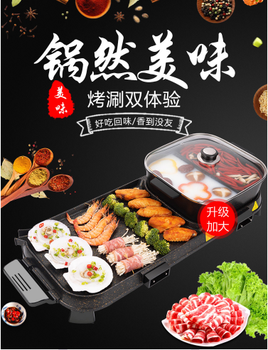 商品名称:尚烤佳 电烧烤炉家用电烤炉烧烤炉多功能可分离鸳鸯烤涮一体锅烧烤架烤肉电烤盘LZW-1702D大号