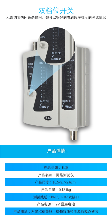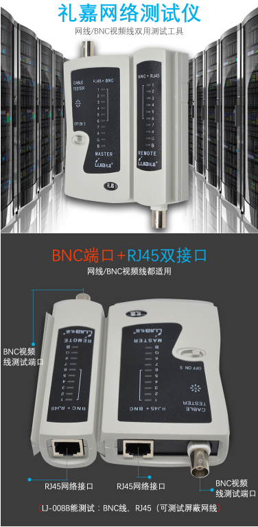 商品名称:礼嘉 LJ-908B 网络+BNC测试仪 电脑 RJ45网络线缆测试器 屏蔽网线BNC监控线测线仪 送9V电池1个